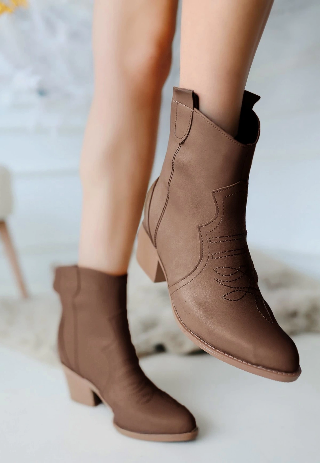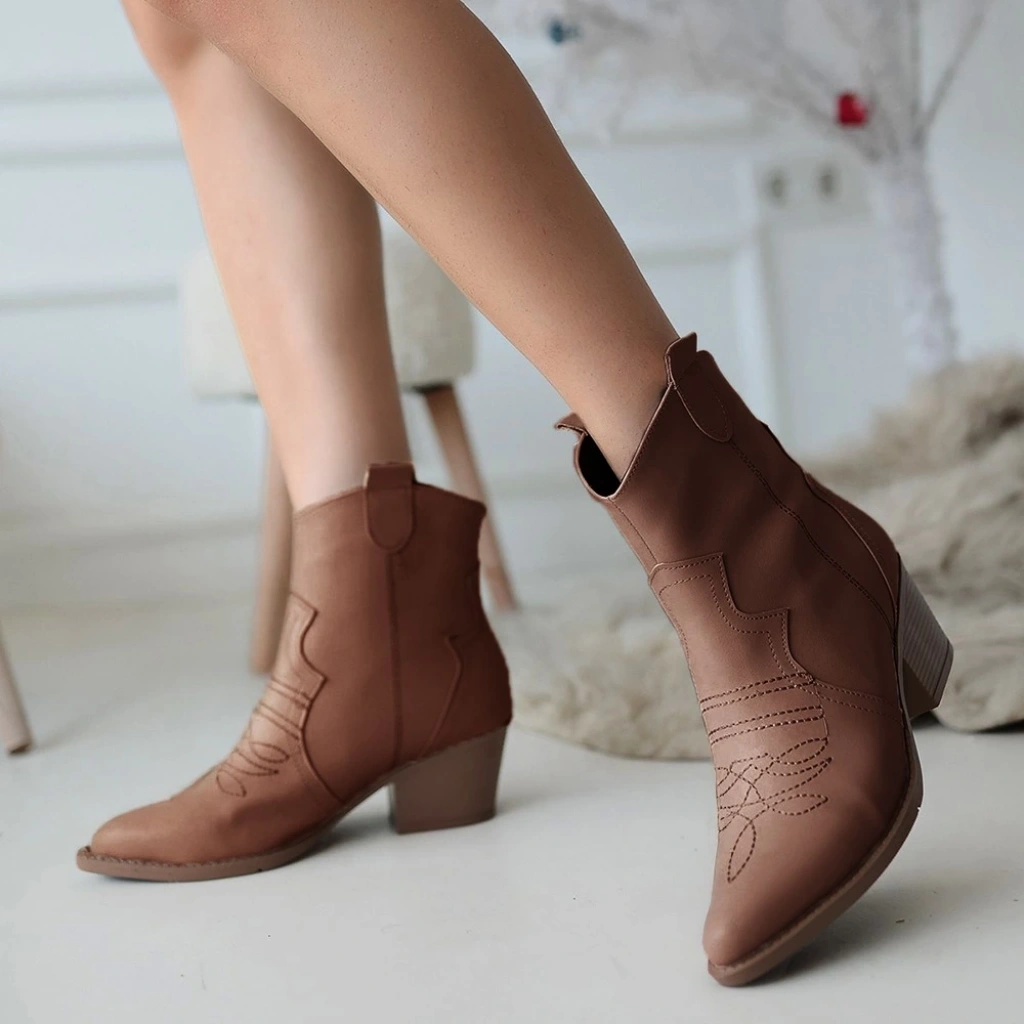 Akver Kahverengi Cilt Topuklu Bot