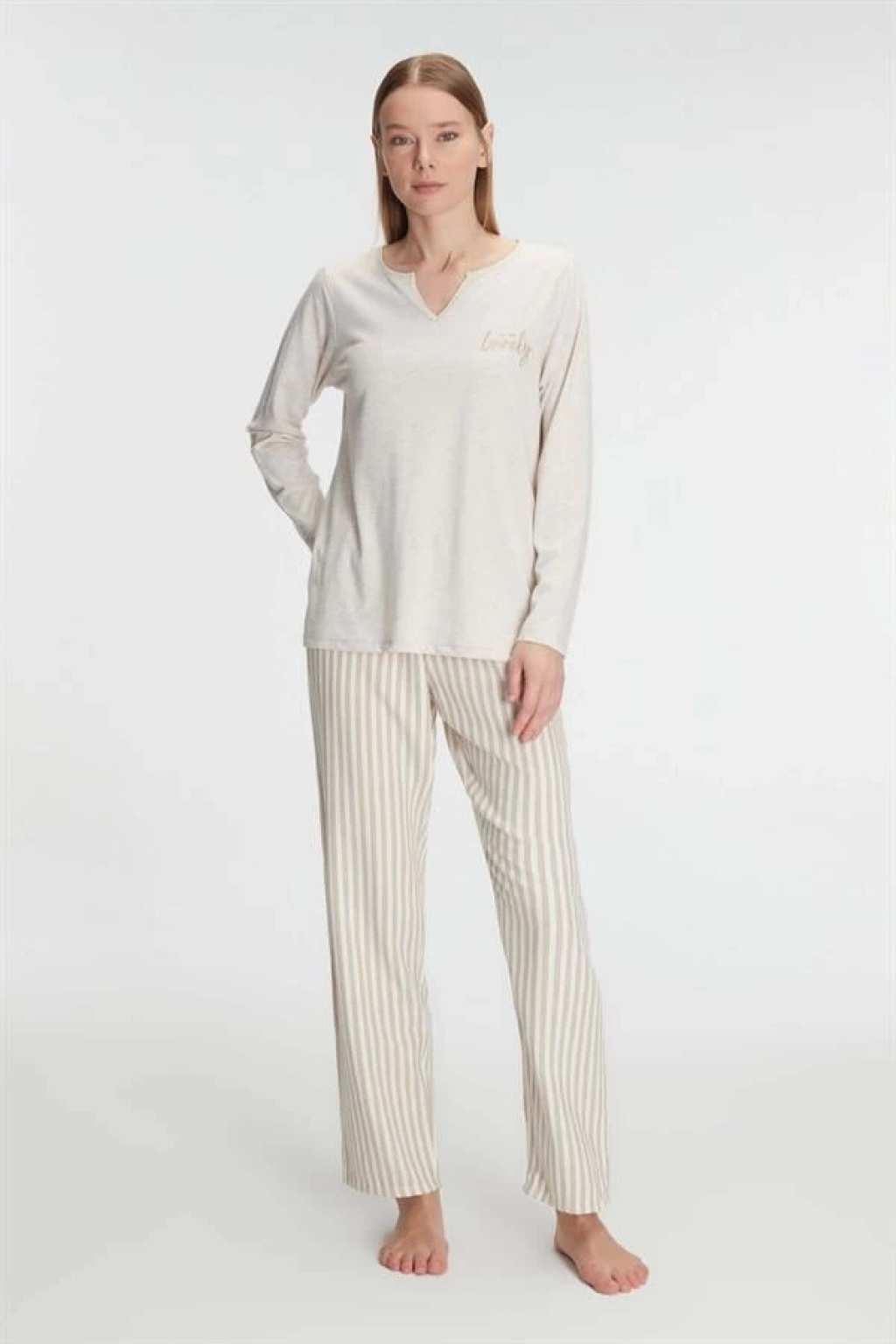 11213 Kadın Uzun Kollu Çizgili V Yaka Kışlık Pijama Takımı ile konforlu bir uyku deneyimi yaşayın. 48 % Poliester 47 % Pamuk 5 % Elastan kumaşı ile vücudunuza yumuşak bir dokunuş sağlar. Bu pijama takımı, özellikle soğuk gecelerde sıcak kalmanızı sağlayan uzun kollu tasarımı ile öne çıkıyor. Nemi emen pamuklu dokusu sayesinde cildinizin nefes almasına olanak tanır, böylece gece boyu rahatlıkla uyuyabilirsiniz. Evde dinlenirken ya da sevdiklerinizle geçireceğiniz rahat zamanlarda giymek için idealdir. Pijama takımları, günün yorgunluğunu atarken şıklığınızı da korumanızı sağlar. Hediye olarak da tercih edebileceğiniz bu takım, kaliteli kumaşı ve şık tasarımıyla her zaman favoriniz olacak. Uyku sırasında hareket özgürlüğü sunan esnek yapısıyla bu pijama takımı, her gece keyifle giyeceğiniz bir parça olacak. Kaliteli kumaşı sayesinde uzun süreli kullanımda bile yıpranma göstermez. Kaliteli kumaşı sayesinde uzun süreli kullanımda bile yıpranma göstermez. Yumuşak dokusu sayesinde gün boyu cildinizde rahat bir his bırakır. Rahat kesimi ve esnek yapısı ile her vücut tipine uygun bir kullanım sunar. Kaliteli kumaşı sayesinde uzun süreli kullanımda bile yıpranma göstermez. Farklı beden seçenekleri ile herkesin rahatlıkla kullanabileceği bir ürün olarak öne çıkar. Evde ya da dışarıda giyebileceğiniz bu ürün, her mevsim rahatlıkla kullanılabilir. Kaliteli kumaşı sayesinde uzun süreli kullanımda bile yıpranma göstermez. Evde ya da dışarıda giyebileceğiniz bu ürün, her mevsim rahatlıkla kullanılabilir. Bu ürünle tarzınızı yansıtırken konforu da elden bırakmamış olacaksınız. Kaliteli kumaşı sayesinde uzun süreli kullanımda bile yıpranma göstermez. Kolay yıkanabilir özelliği ile bakım konusunda da zahmetsizdir. Yumuşak dokusu sayesinde gün boyu cildinizde rahat bir his bırakır. Kolay yıkanabilir özelliği ile bakım konusunda da zahmetsizdir.