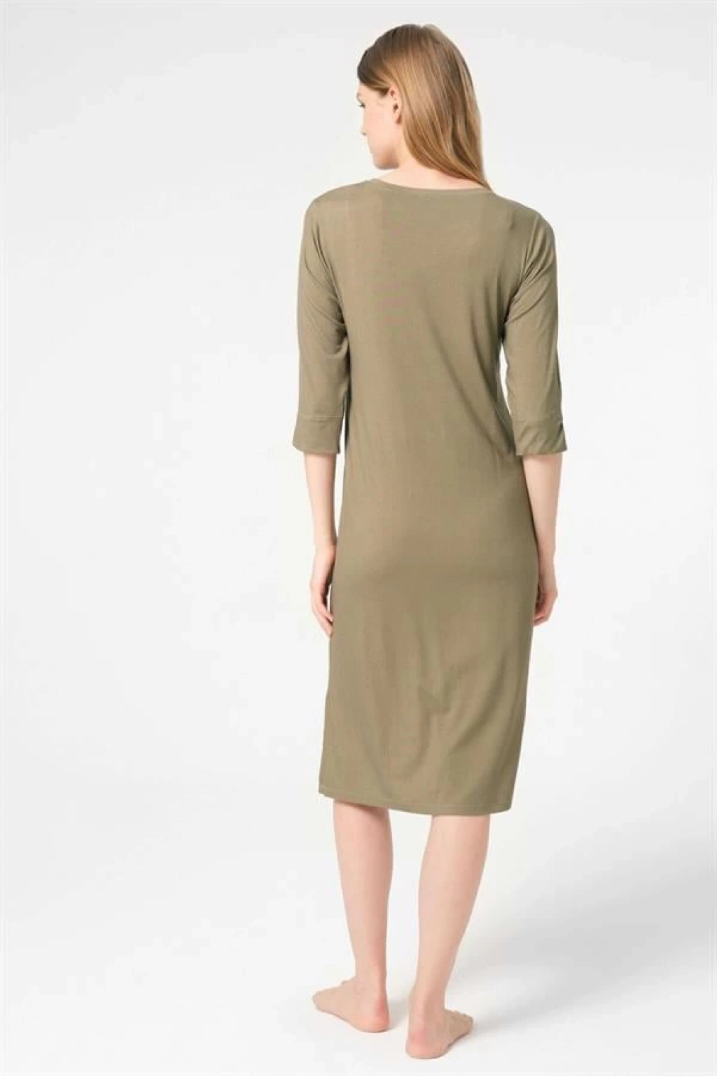5793 Günlük Basic Ev Giyimi Kısa Yarım Kol Bisiklet Yaka Viskon düz Kışlık Örme Midi Diz_Altı Nakış Detaylı Gecelik Sabahlık modelimiz
