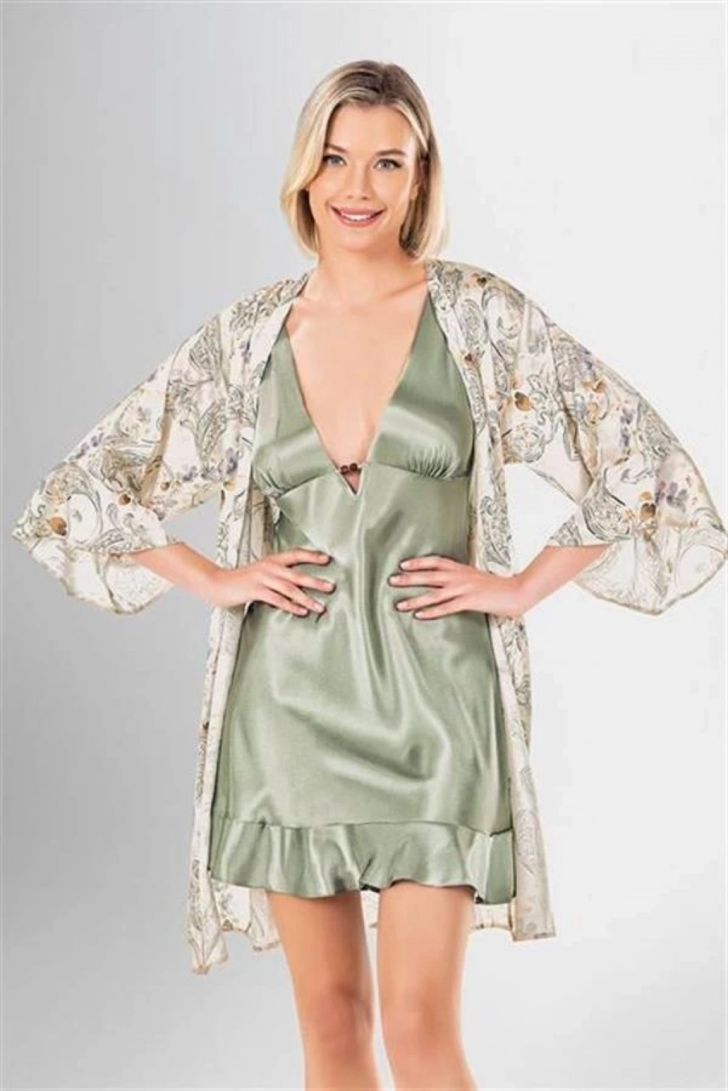 2 li Kısa Sabahlık Takımı Desenli