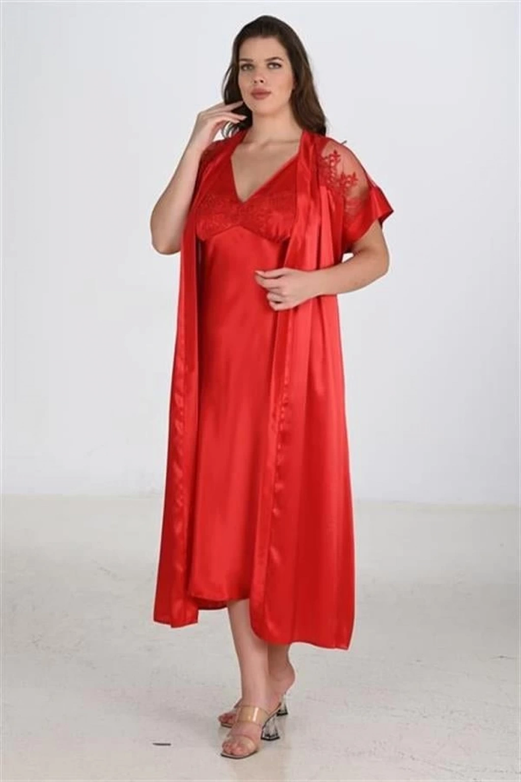 Aria's 2li Kırmızı Sabahlık Takımı Bigsize 6226