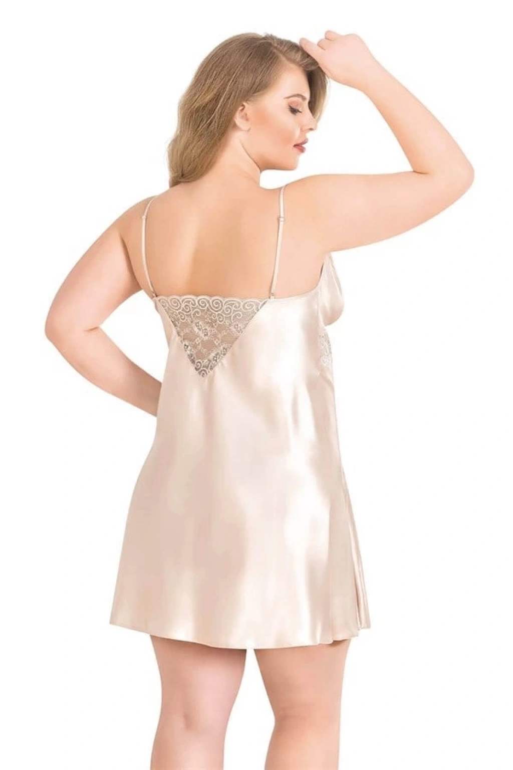 Aria's Büyük Beden Fildişi Kısa Saten Gecelik 2050
