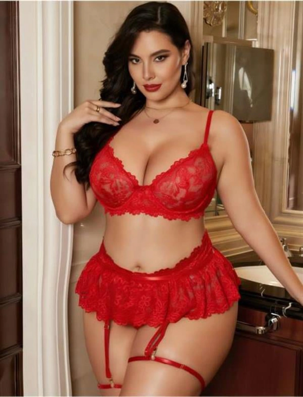 ❤️? Kırmızının Gücü, Dantelin Zarafeti: Büyük Beden Kırmızı Dantel İşlemeli Etekli Jartiyer Takımı ✨