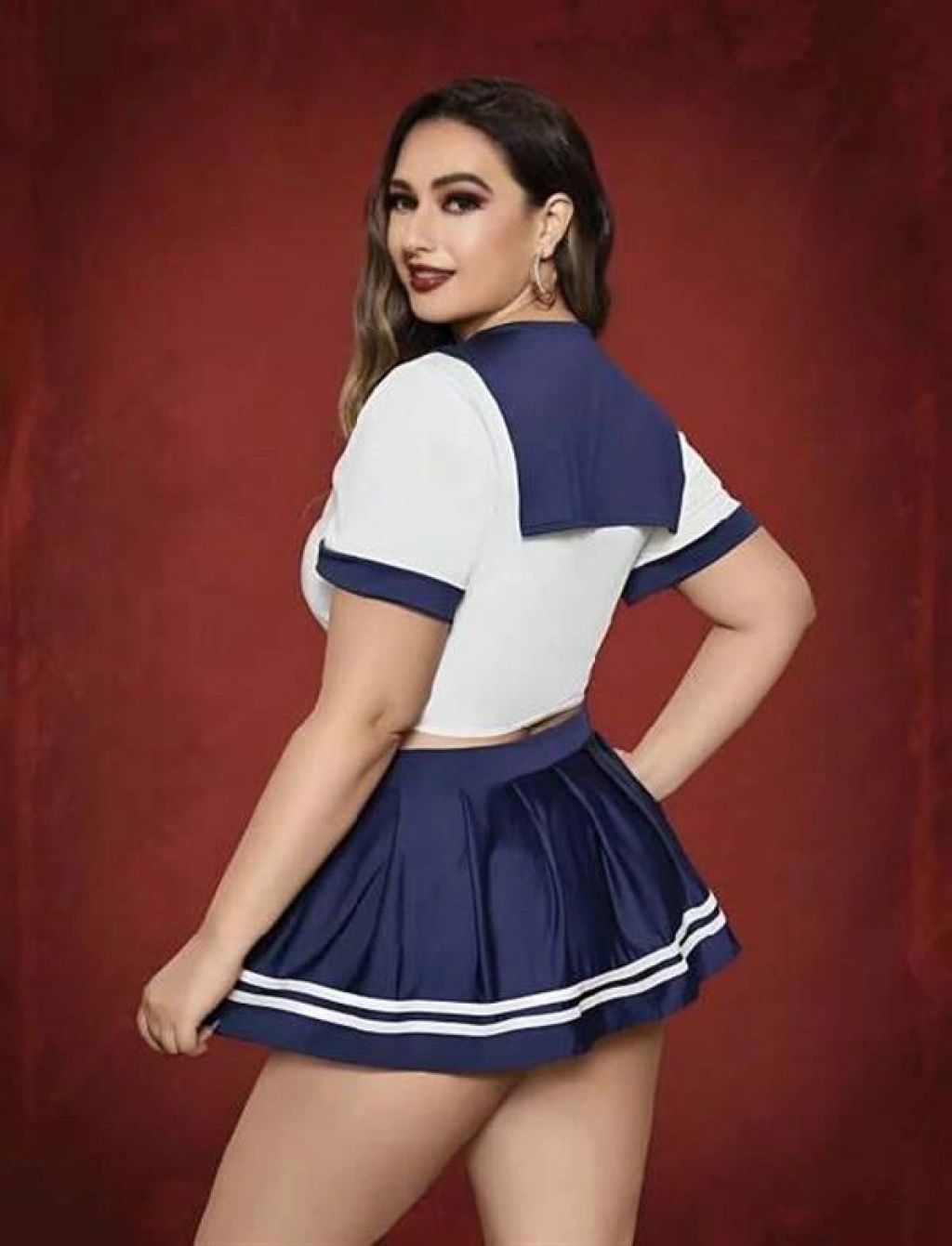 Büyük Beden Lacivert Mini Etekli Fantezi Denizci Kostümü