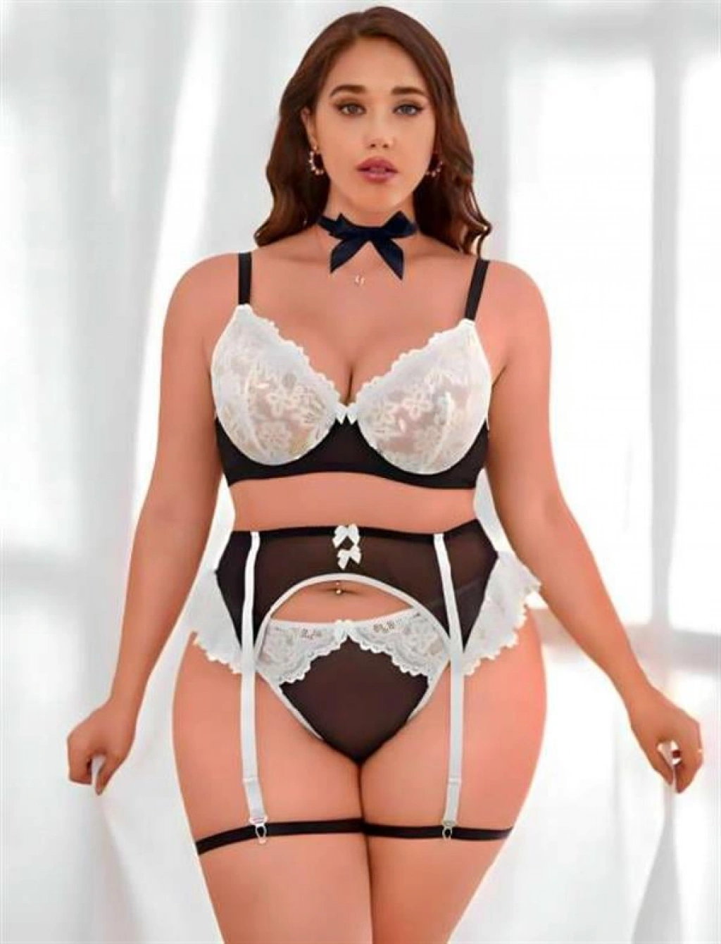 Siyahın gizemiyle beyazın saflığını bir araya getiren bu özel jartiyer takımı, zarif dantel işlemeleriyle göz kamaştırıyor. Büyük beden yapısı sayesinde hem rahatlık hem de şıklık sunarken, her detayıyla feminenliğini vurguluyor.