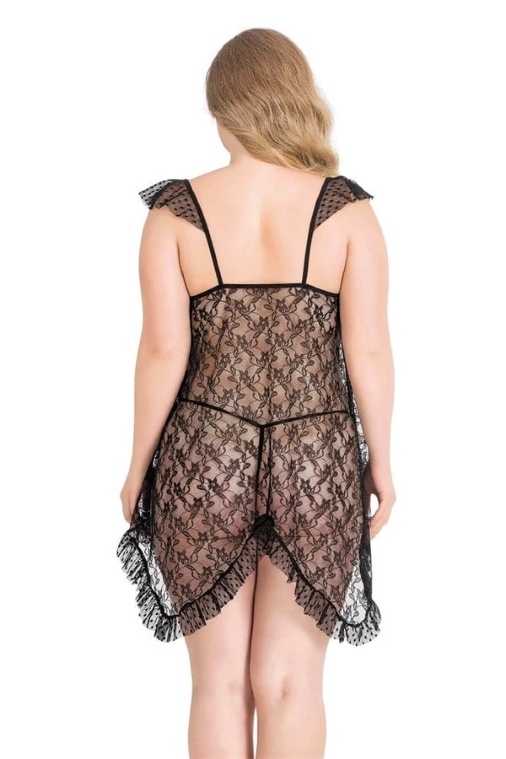 Aria's Büyük Beden Siyah Kısa Tül Gecelik 3021