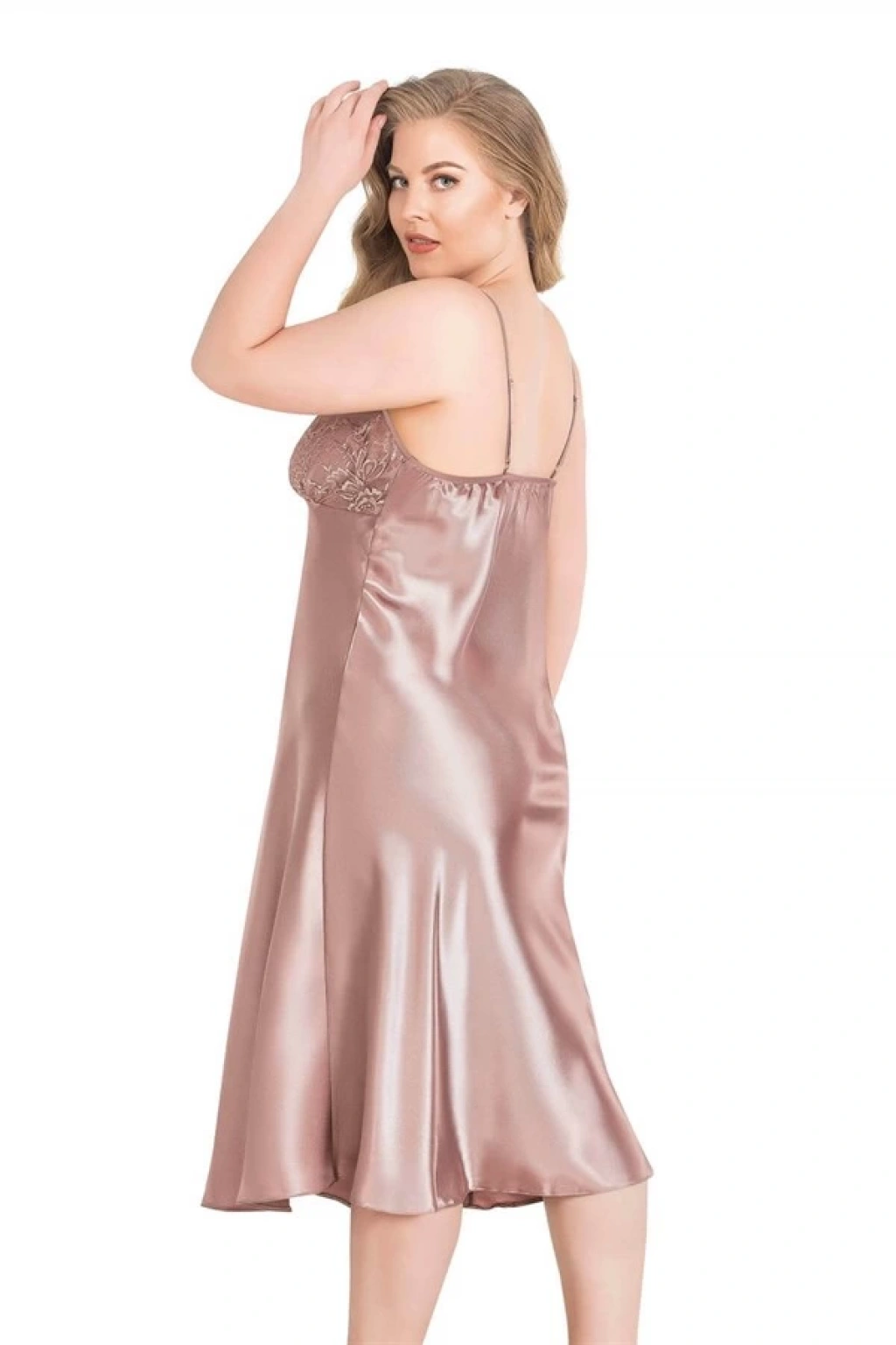 Aria's Büyük Beden Vizon Uzun Saten Gecelik 2072