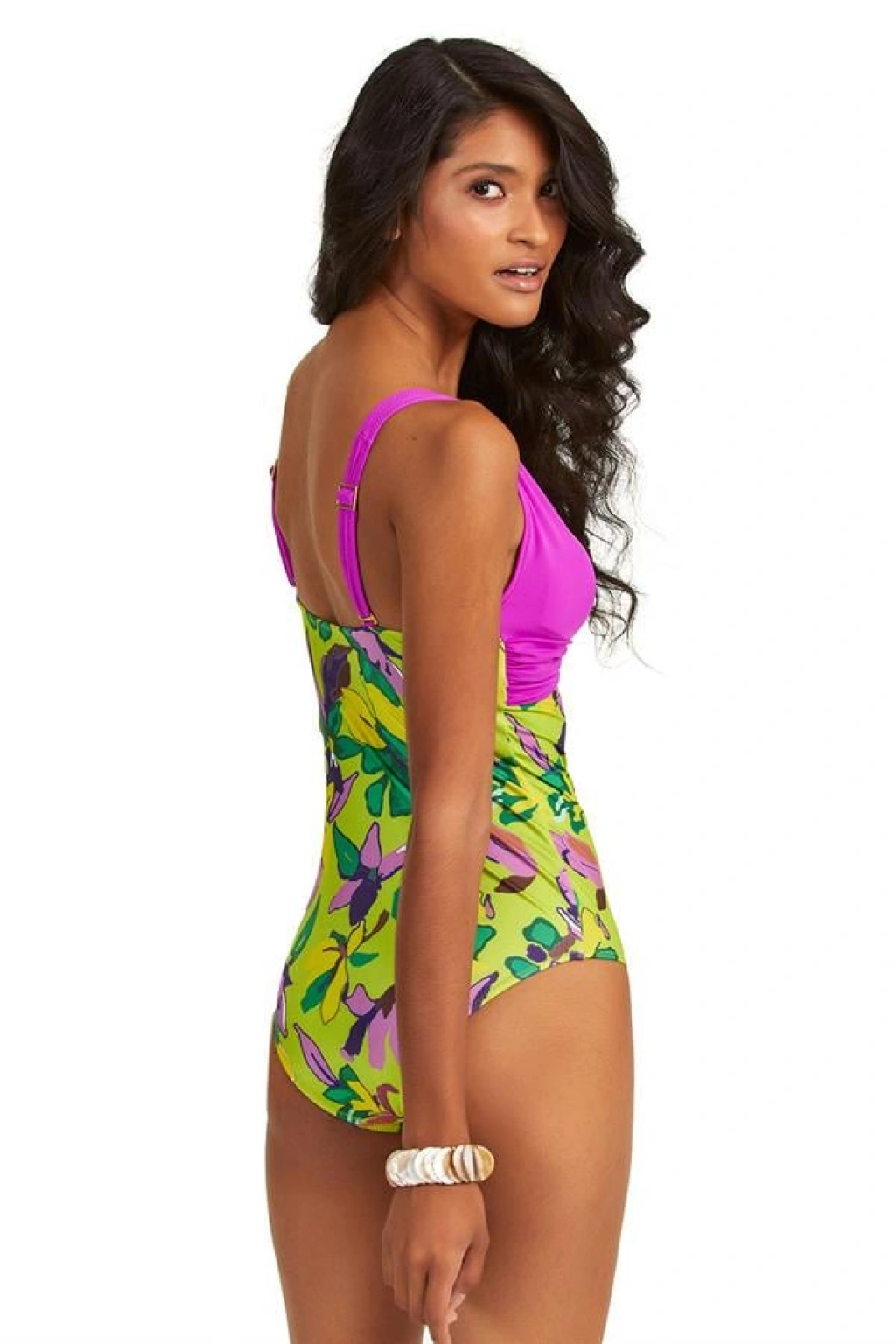 Büyük Beden Yeşil Çiçek Desenli Drapeli Mayo