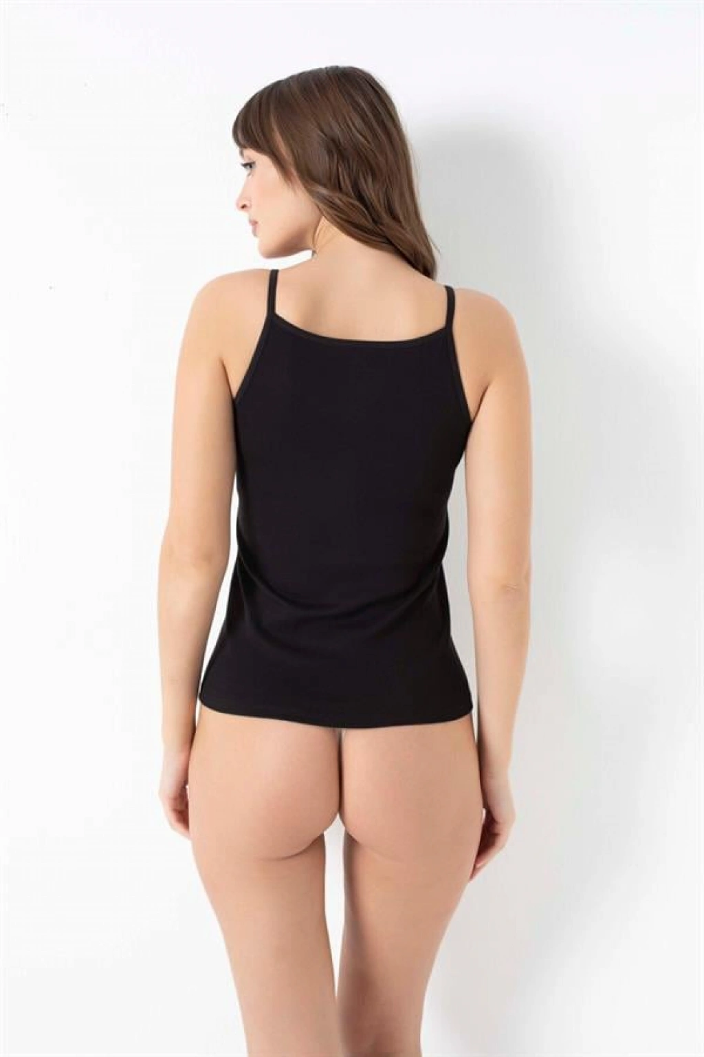 ? Likralı Pamuklu İp Askılı Siyah Atlet