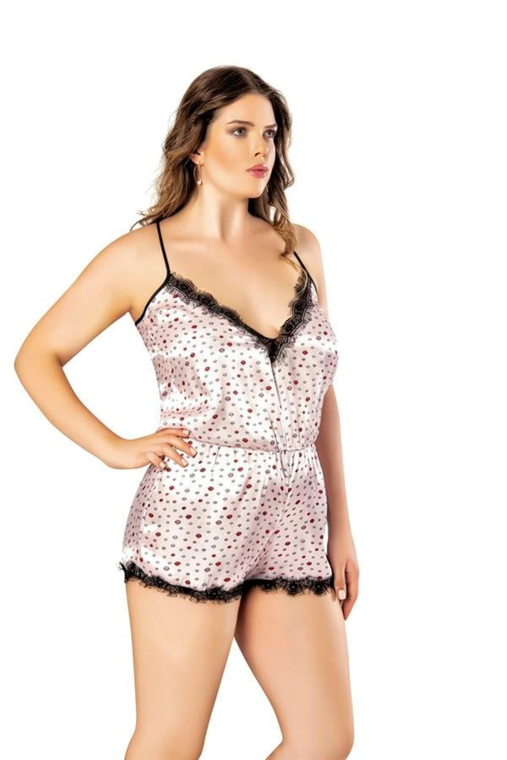 Öpücük Desenli Dantel İşlemeli Fantezi Büyük Beden Saten Babydoll Gecelik