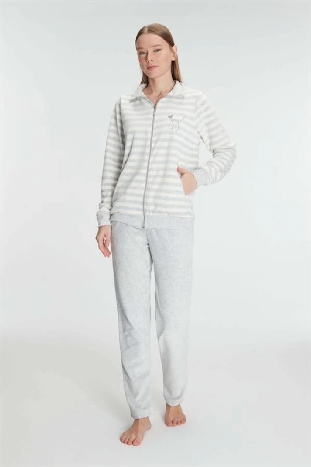 Pamuklu Uzun Kollu Fermuarlı Sweatshirt ve Pantolon Takım Pijama Takımı ile konforlu bir uyku deneyimi yaşayın. 80 % Pamuk 20 % Poliester kumaşı ile vücudunuza yumuşak bir dokunuş sağlar. Bu pijama takımı, özellikle soğuk gecelerde sıcak kalmanızı sağlayan uzun kollu tasarımı ile öne çıkıyor. Nemi emen pamuklu dokusu sayesinde cildinizin nefes almasına olanak tanır, böylece gece boyu rahatlıkla uyuyabilirsiniz. Evde dinlenirken ya da sevdiklerinizle geçireceğiniz rahat zamanlarda giymek için idealdir. Pijama takımları, günün yorgunluğunu atarken şıklığınızı da korumanızı sağlar. Hediye olarak da tercih edebileceğiniz bu takım, kaliteli kumaşı ve şık tasarımıyla her zaman favoriniz olacak. Uyku sırasında hareket özgürlüğü sunan esnek yapısıyla bu pijama takımı, her gece keyifle giyeceğiniz bir parça olacak. Evde ya da dışarıda giyebileceğiniz bu ürün, her mevsim rahatlıkla kullanılabilir. Kaliteli kumaşı sayesinde uzun süreli kullanımda bile yıpranma göstermez. Kaliteli kumaşı sayesinde uzun süreli kullanımda bile yıpranma göstermez. Günlük giyimde, rahatlığı ve şıklığı ön planda tutanlar için idealdir. Günlük giyimde, rahatlığı ve şıklığı ön planda tutanlar için idealdir. Bu ürünle tarzınızı yansıtırken konforu da elden bırakmamış olacaksınız. Farklı beden seçenekleri ile herkesin rahatlıkla kullanabileceği bir ürün olarak öne çıkar. Rahat kesimi ve esnek yapısı ile her vücut tipine uygun bir kullanım sunar. Yumuşak dokusu sayesinde gün boyu cildinizde rahat bir his bırakır. Kolay yıkanabilir özelliği ile bakım konusunda da zahmetsizdir. Evde ya da dışarıda giyebileceğiniz bu ürün, her mevsim rahatlıkla kullanılabilir. Bu ürünle tarzınızı yansıtırken konforu da elden bırakmamış olacaksınız. Günlük giyimde, rahatlığı ve şıklığı ön planda tutanlar için idealdir. Yumuşak dokusu sayesinde gün boyu cildinizde rahat bir his bırakır.