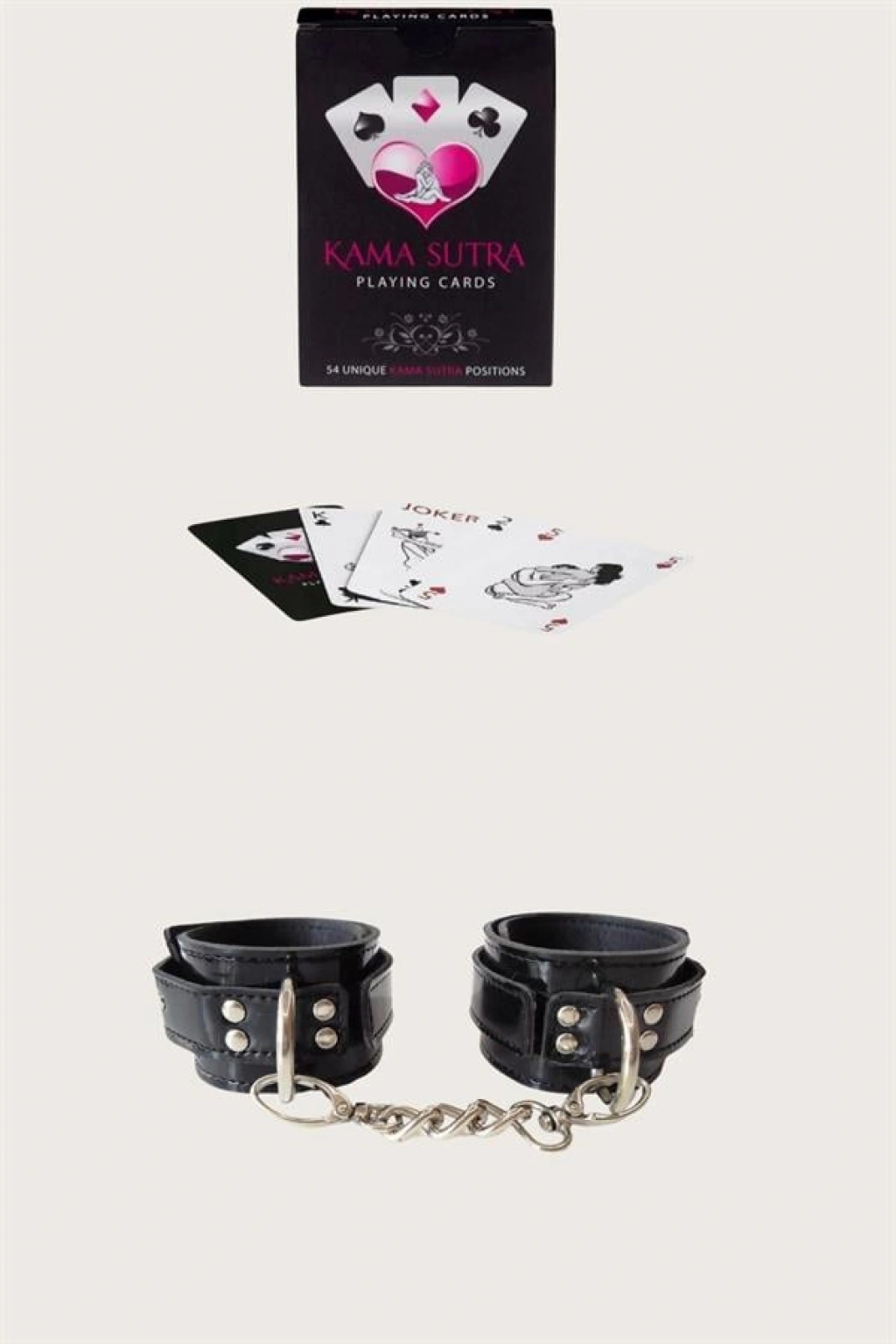 Sexy Görselli Oyun Kartı Kama Sutra Siyah Kelepçe Set