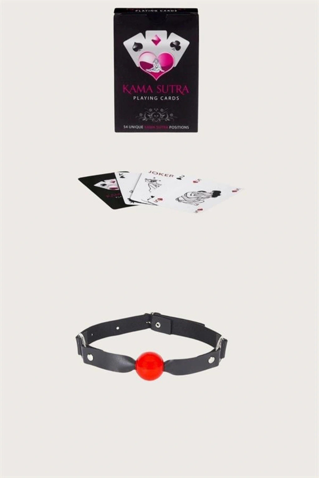 Sexy Görselli Oyun Kartı Kama Sutra Siyah Kırmızı Ağız Topu Set