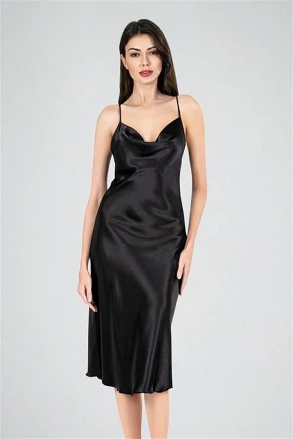 Aria's Uzun Gecelik Degaje Siyah 7741