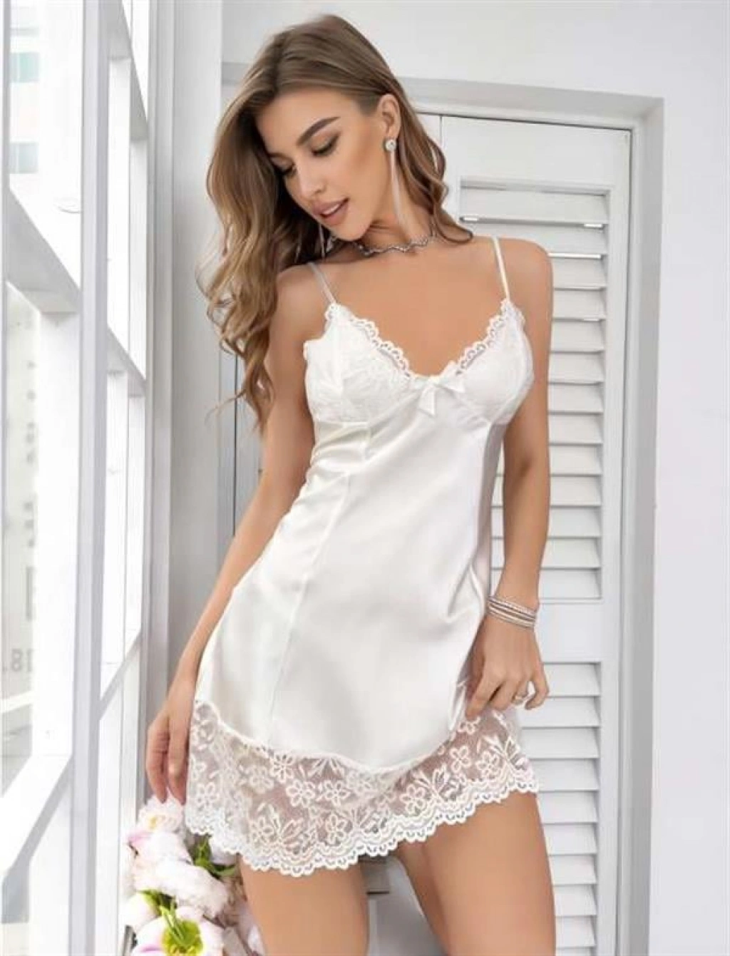 Aria's Beyaz Dantel İşlemeli İnce Askılı Saten Kısa Fantezi Gecelik, zarif tasarımı ve yüksek kalitesiyle gecelerinize romantizm katacak. Saten kumaşıyla yumuşak bir dokunuş sunarken, dantel işlemeleriyle de göz alıcı bir görünüm sergiler. İnce askıları sayesinde rahatlıkla kullanabileceğiniz gecelik, vücudu saran kesimiyle de dikkat çeker. Aria's kalitesiyle üretilen bu geceliği, özel anlarınızın vazgeçilmezi haline getirebilirsiniz. Beyazın saflığını ve dantelin zarafetini bir araya getiren bu gecelik, özel koleksiyonunda yerini almıştır. Kendinizi özel ve çekici hissetmek istediğinizde bu muhteşem parçayı tercih edebilirsiniz.