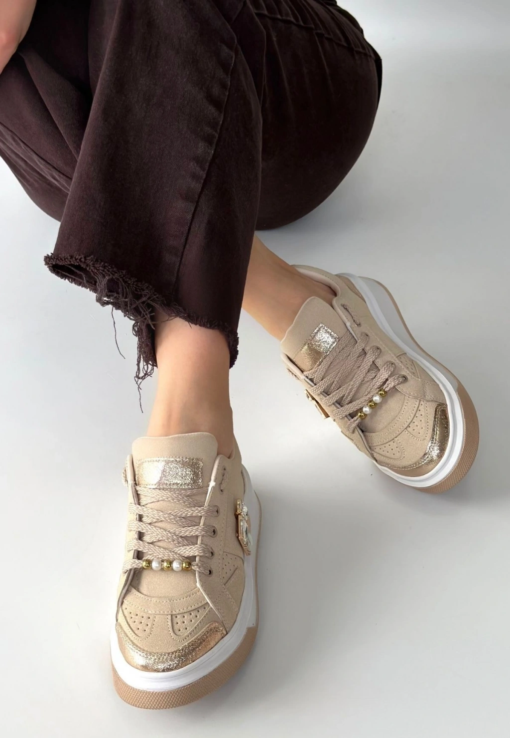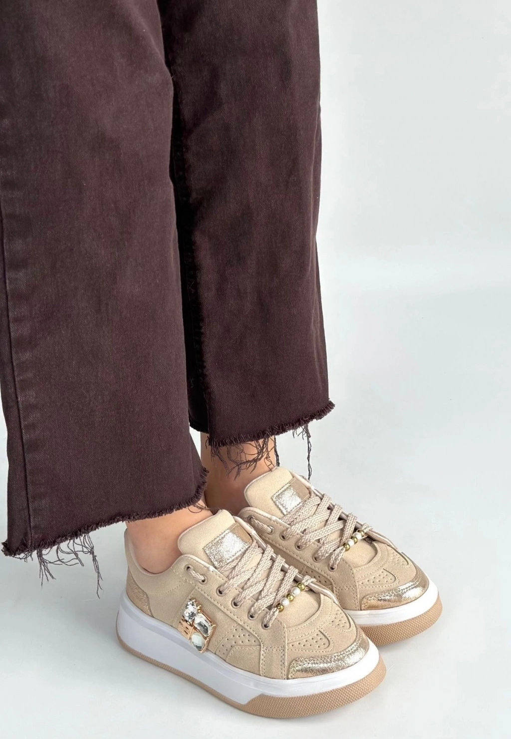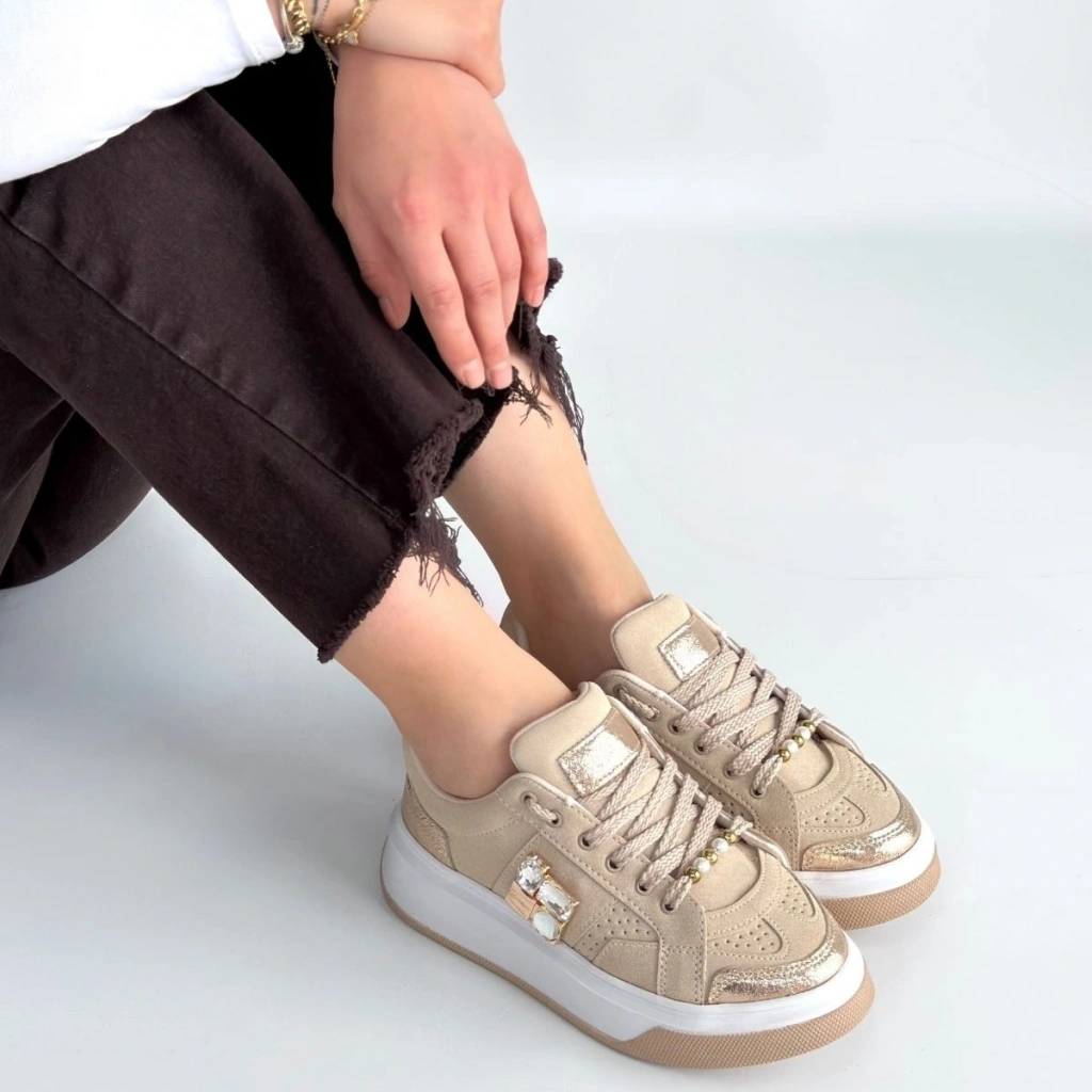 Ceans Bej Süet Bağcıklı Spor Ayakkabı