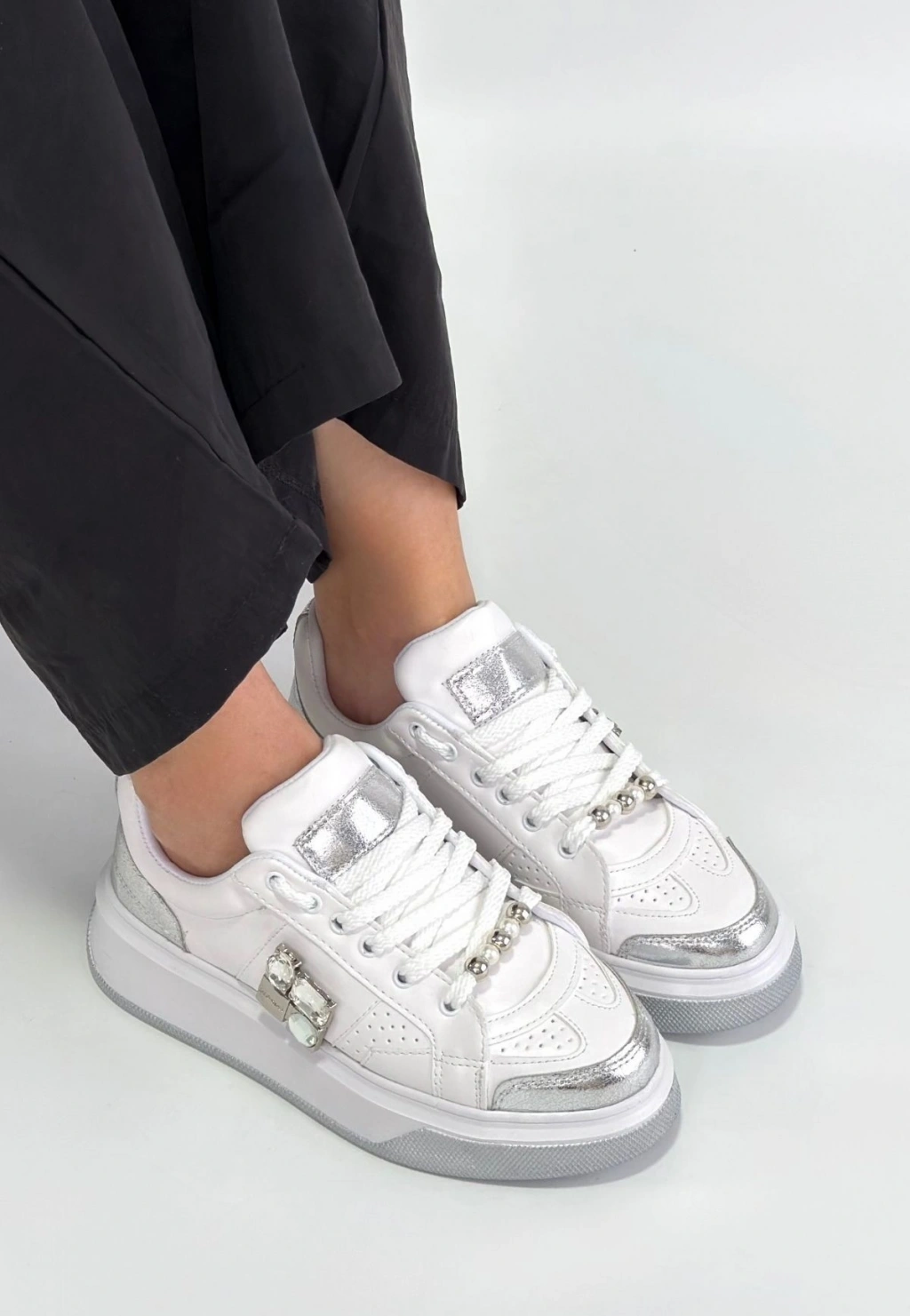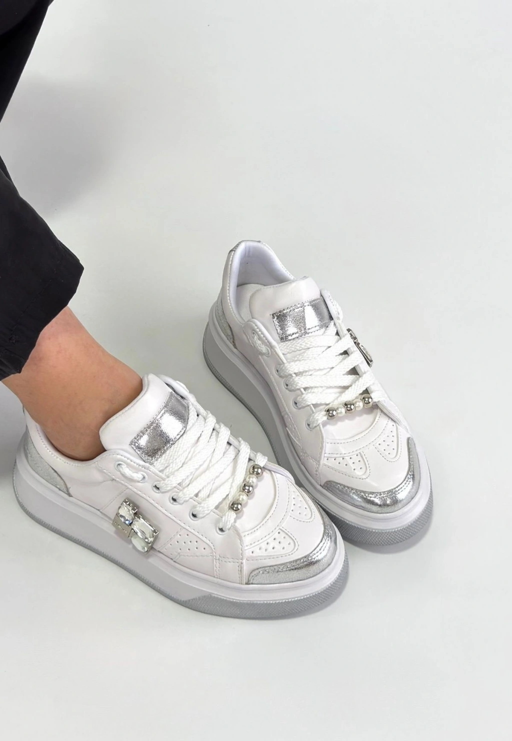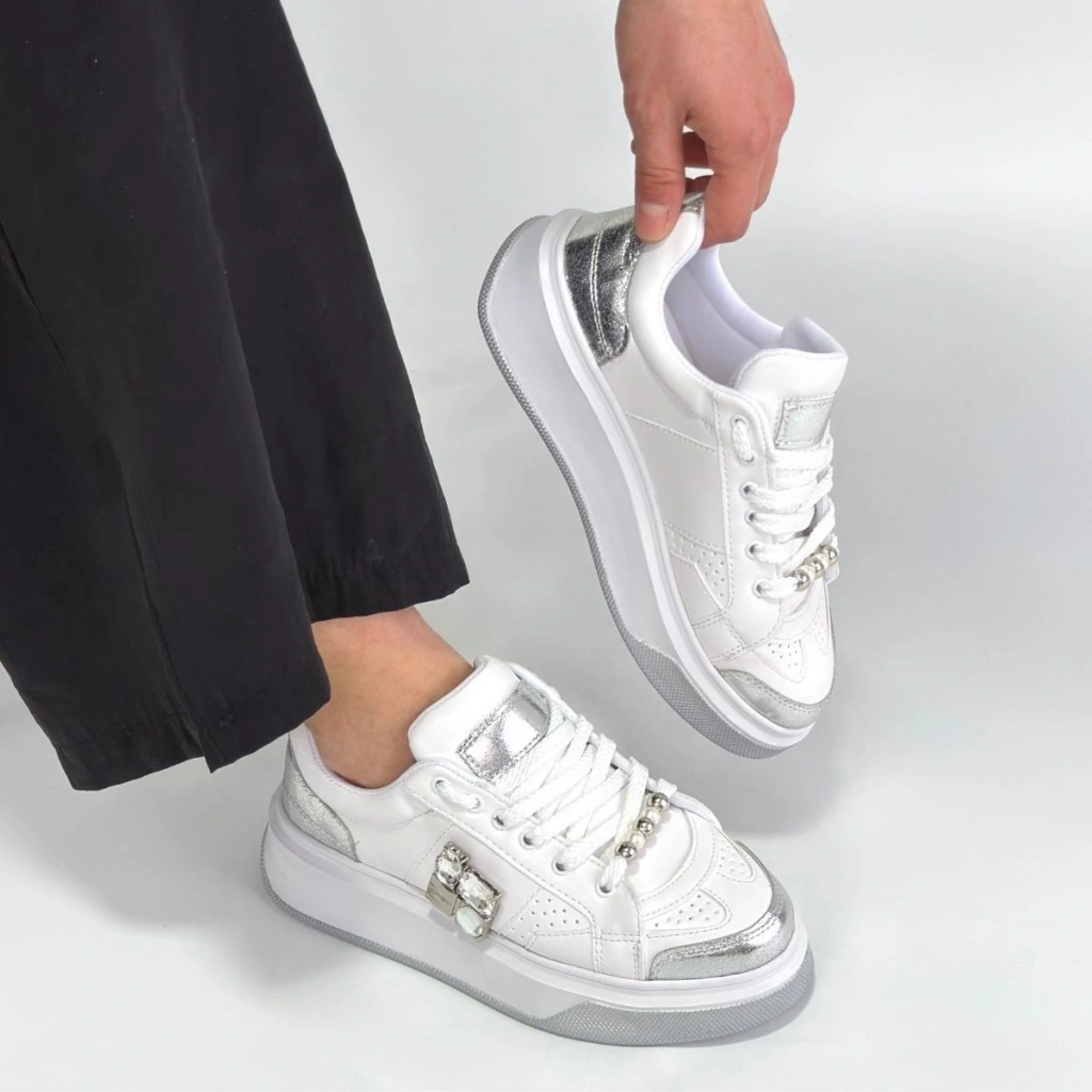Ceans Beyaz Cilt Bağcıklı Spor Ayakkabı