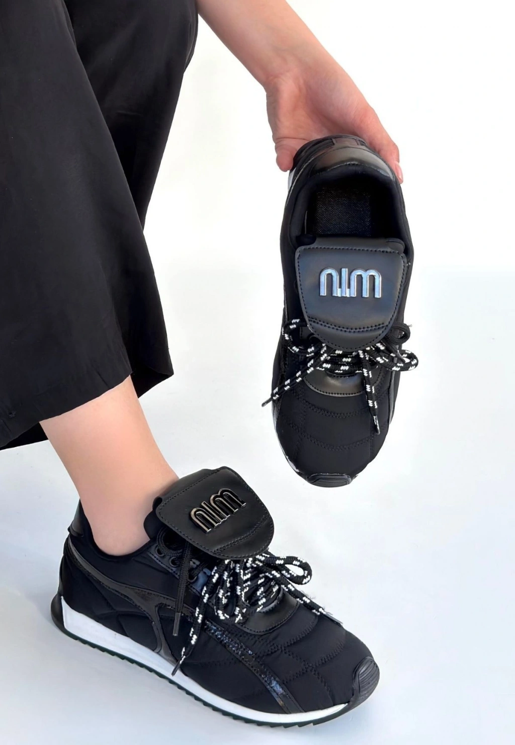 Dissa Siyah Cilt Bağcıklı Paraşüt Detaylı Spor Ayakkabı
