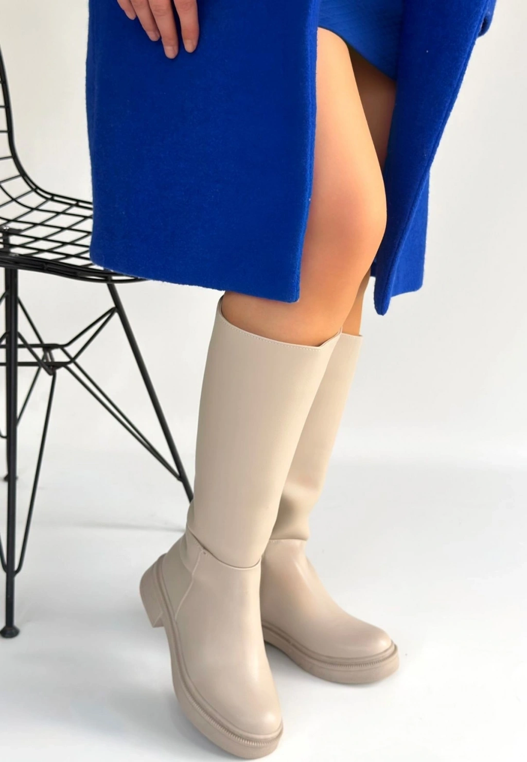 Detay: Topuklu Yandan Fermuarlı Diz Altı Çizme