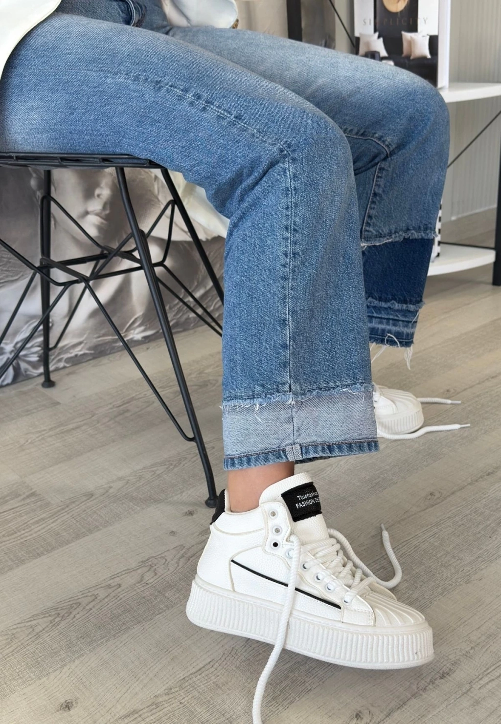 Estim Beyaz Cilt Siyah Detaylı Bağcıklı Spor Ayakkabı