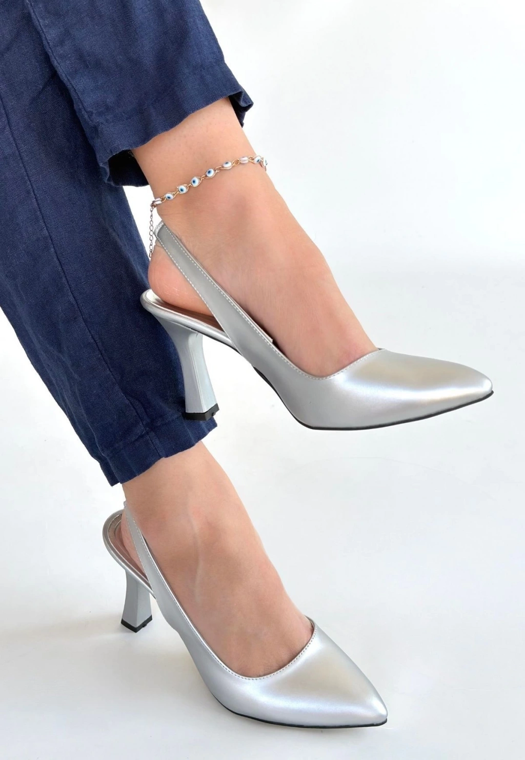 Feey Gümüş Cilt Topuklu Ayakkabı