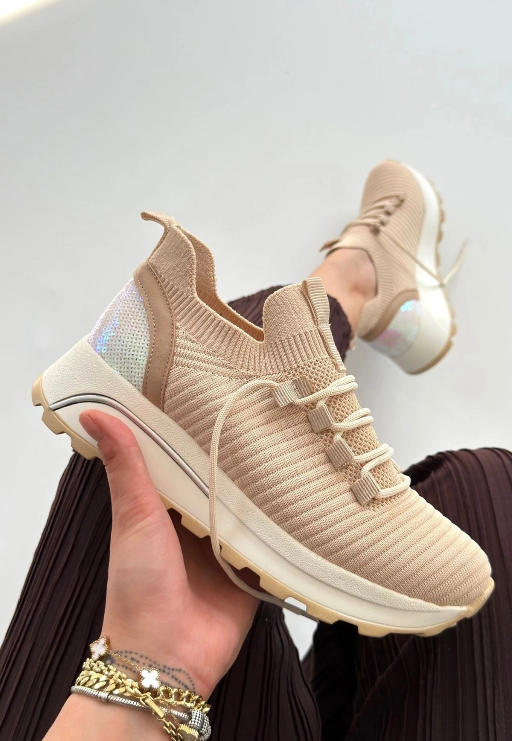 Feort Bej Triko Bağcıklı Spor Ayakkabı