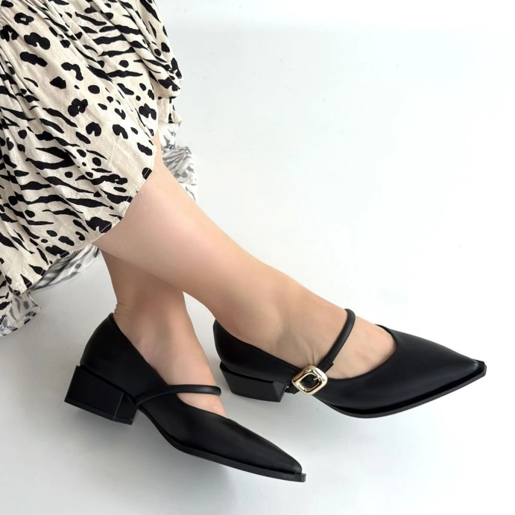 Galye Siyah Cilt Topuklu Ayakkabı