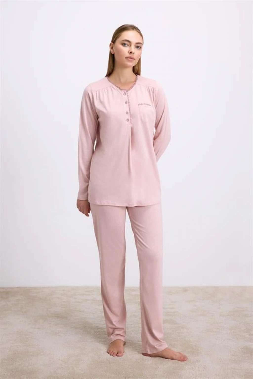 Gül Kurusu Modal Pamuklu Uzun Kollu Düğmeli 2'li Pijama Takımı