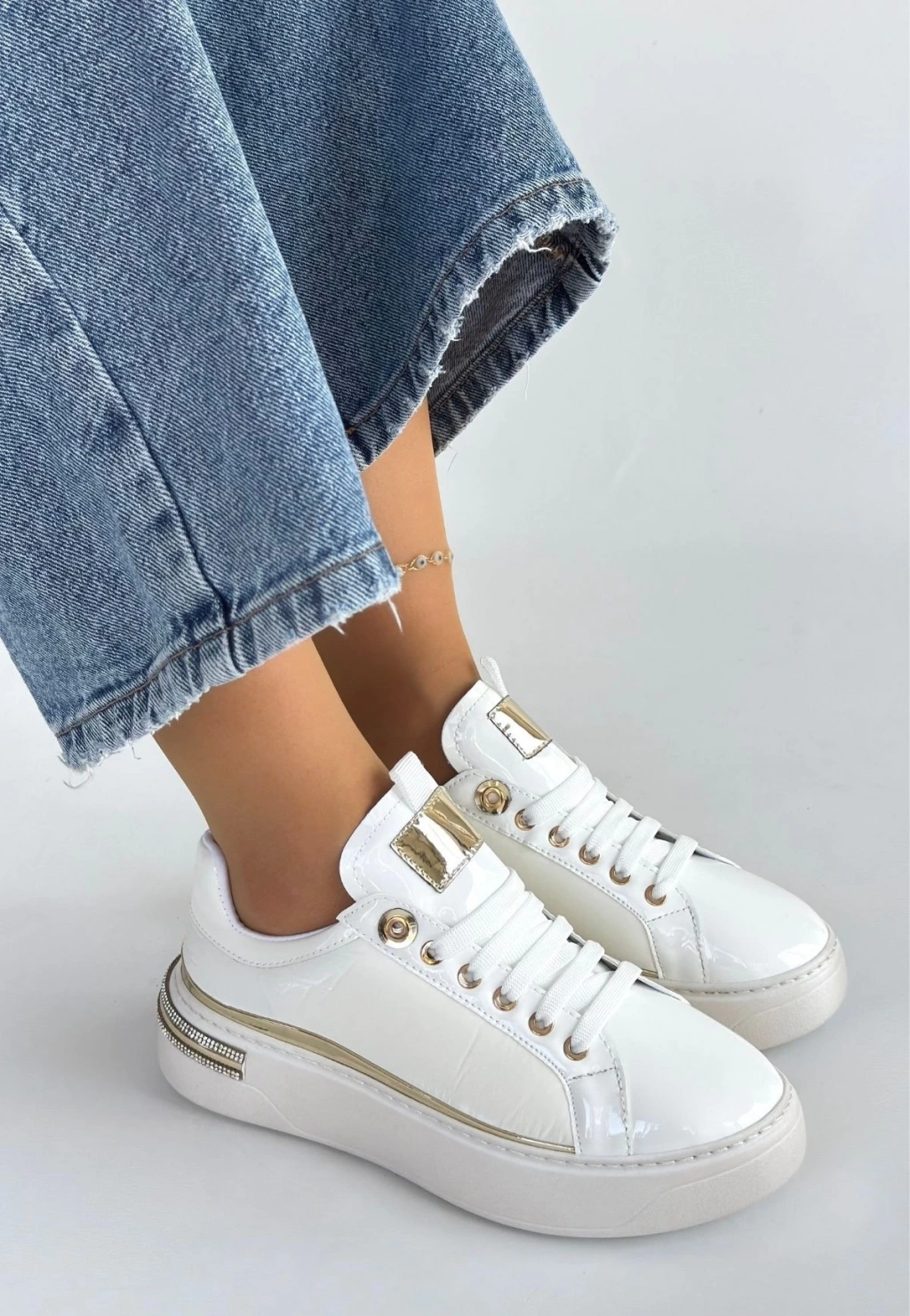 Hley Beyaz Rugan Paraşüt Detaylı Bağcıklı Spor Ayakkabı