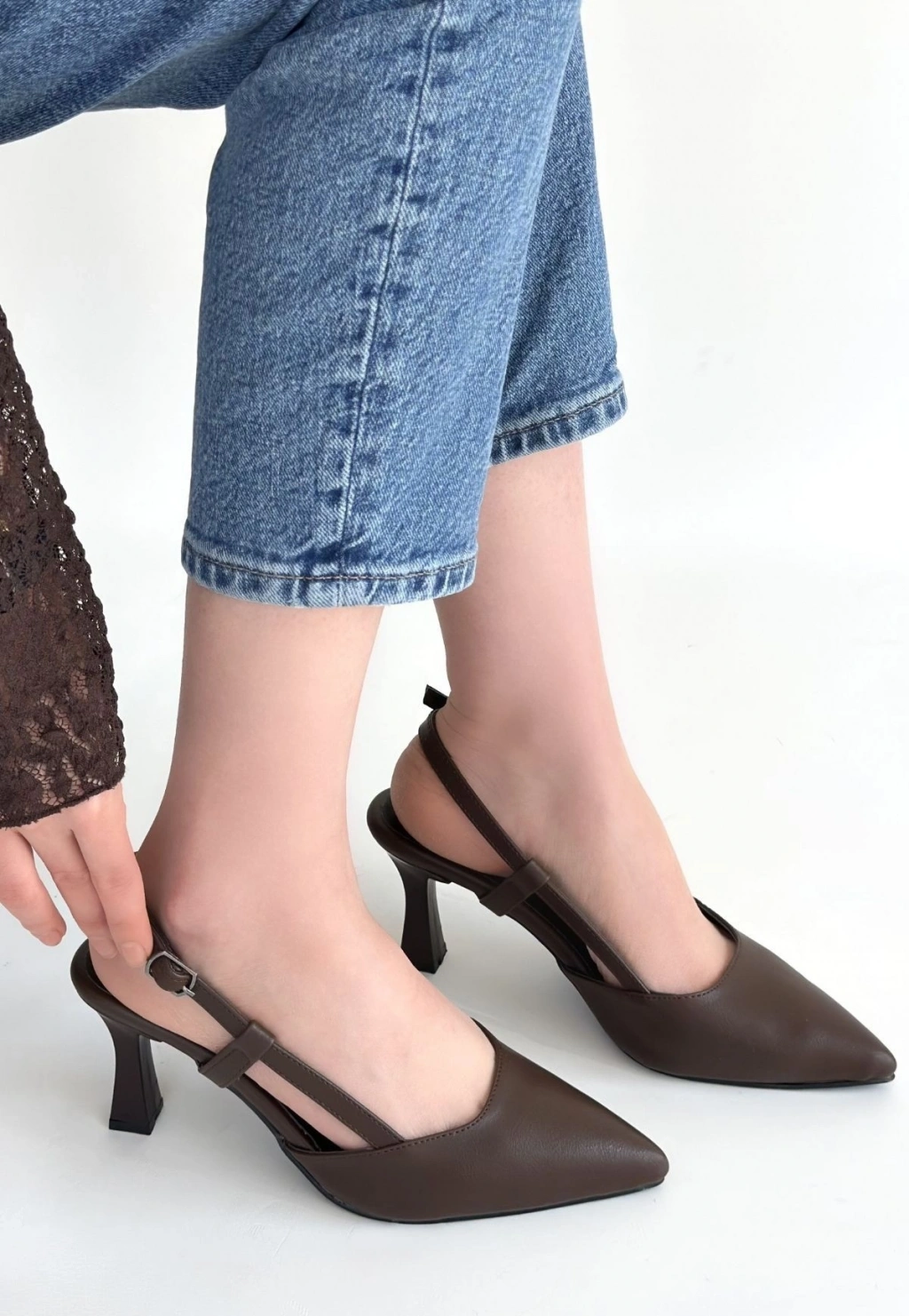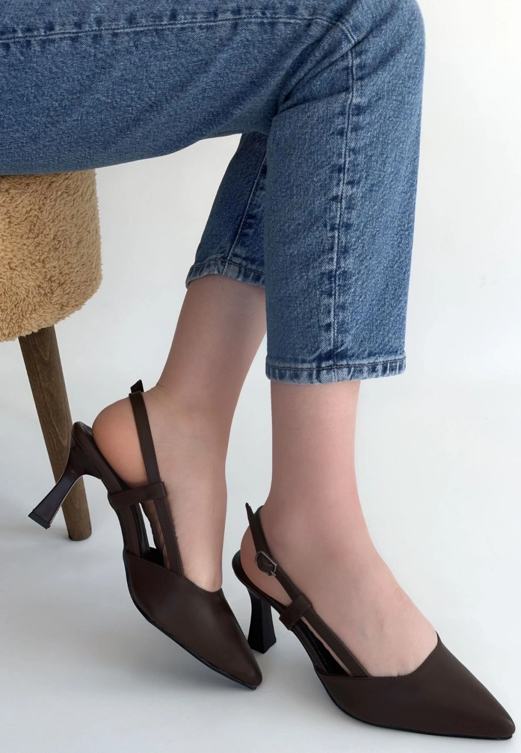 Hoost Kahverengi Cilt Topuklu Ayakkabı