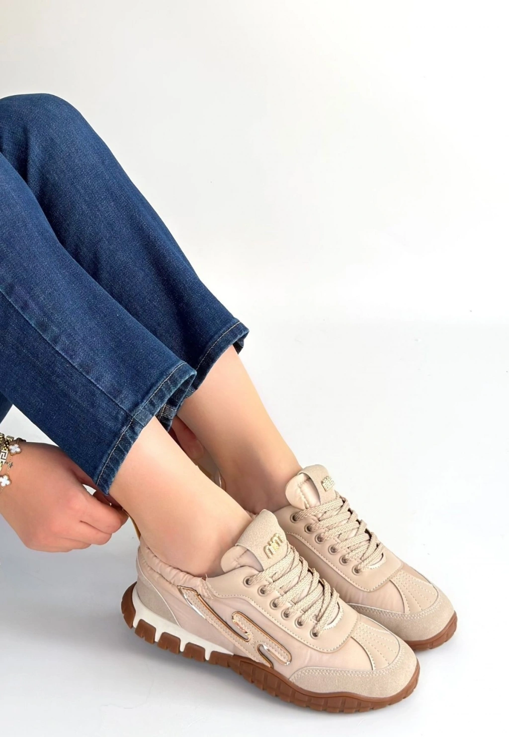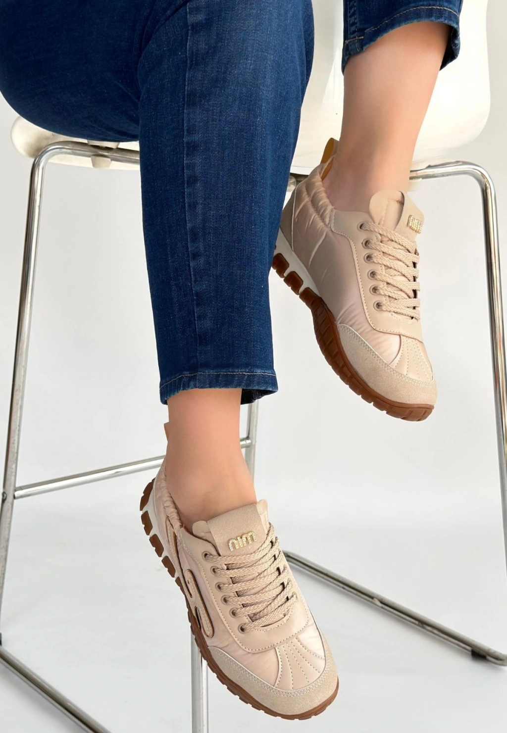 Huer Bej Nubuk Bağcıklı Spor Ayakkabı