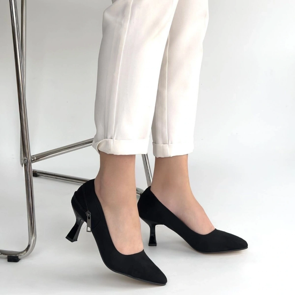 Jedi Siyah Süet Topuklu Ayakkabı