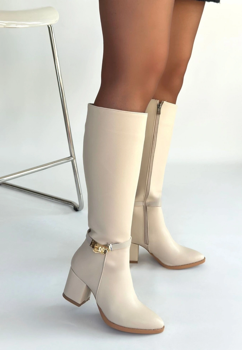 Detay: Topuklu Diz Altı Yandan Fermuarlı Çizme