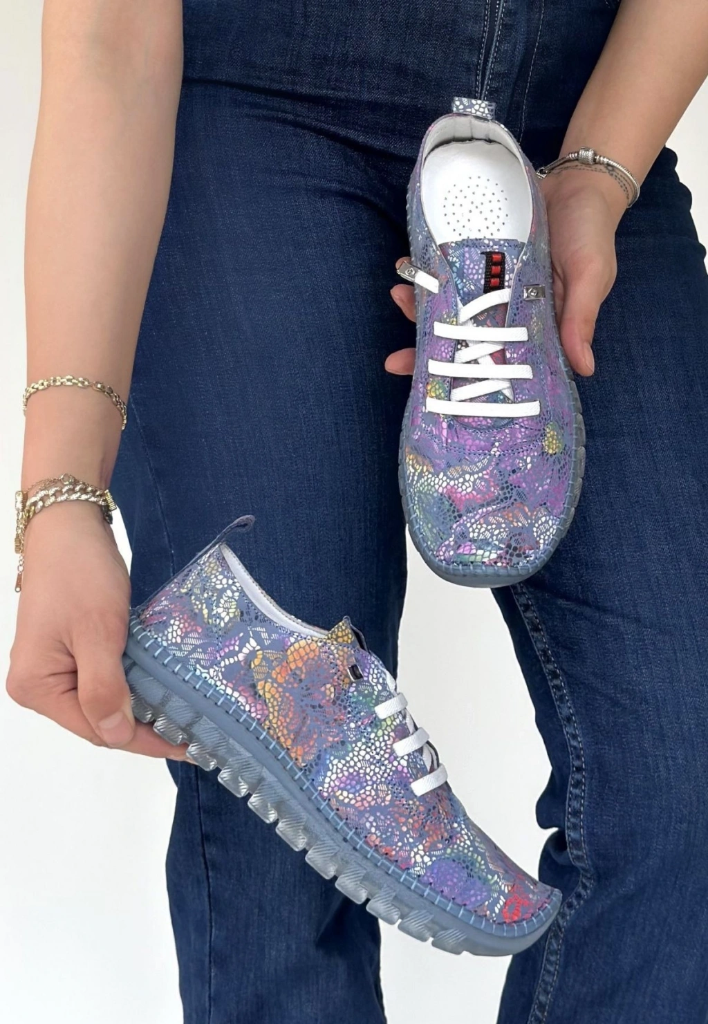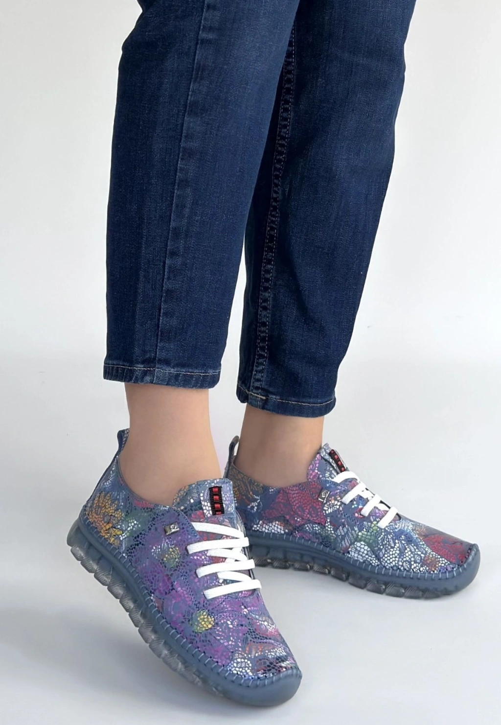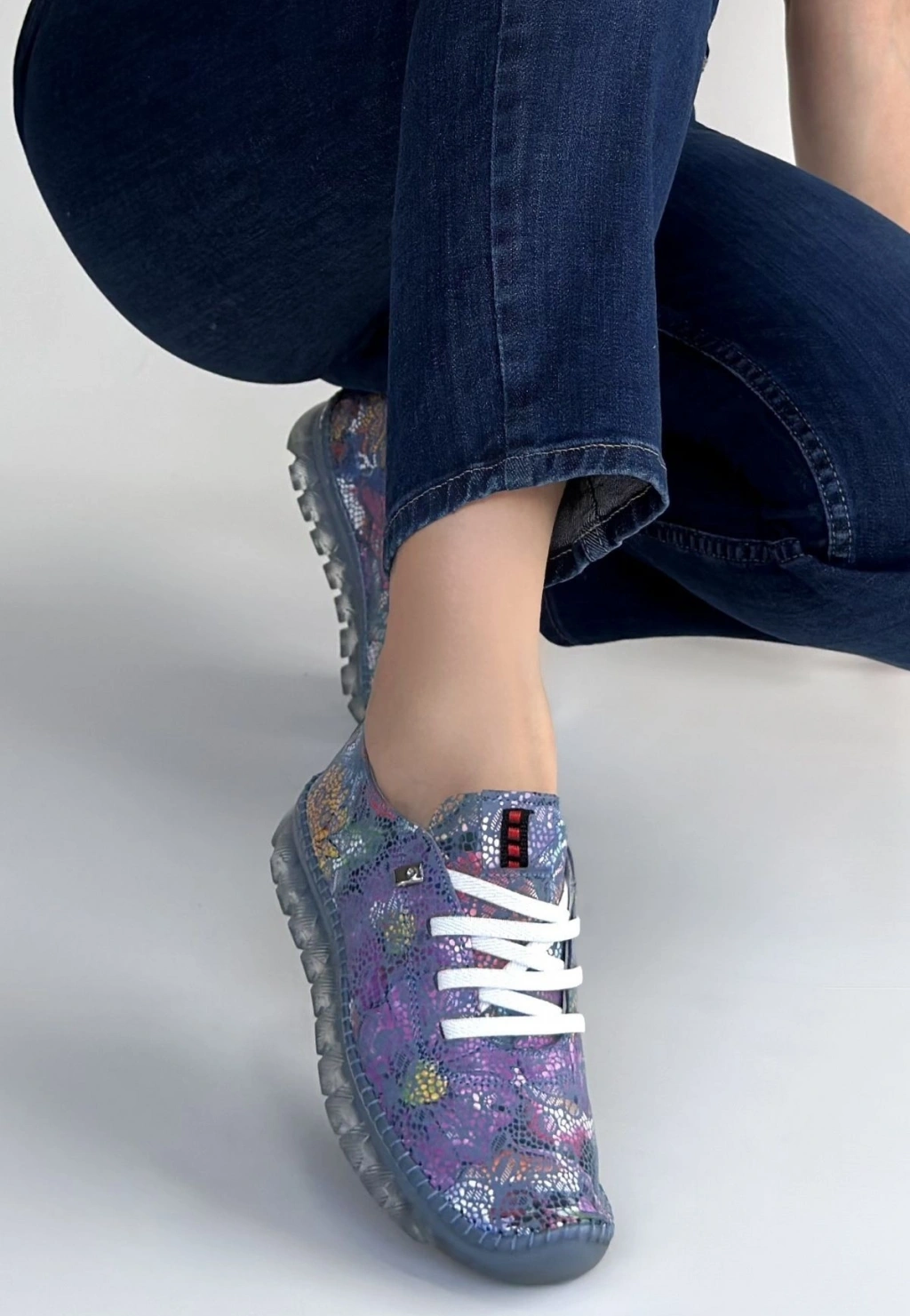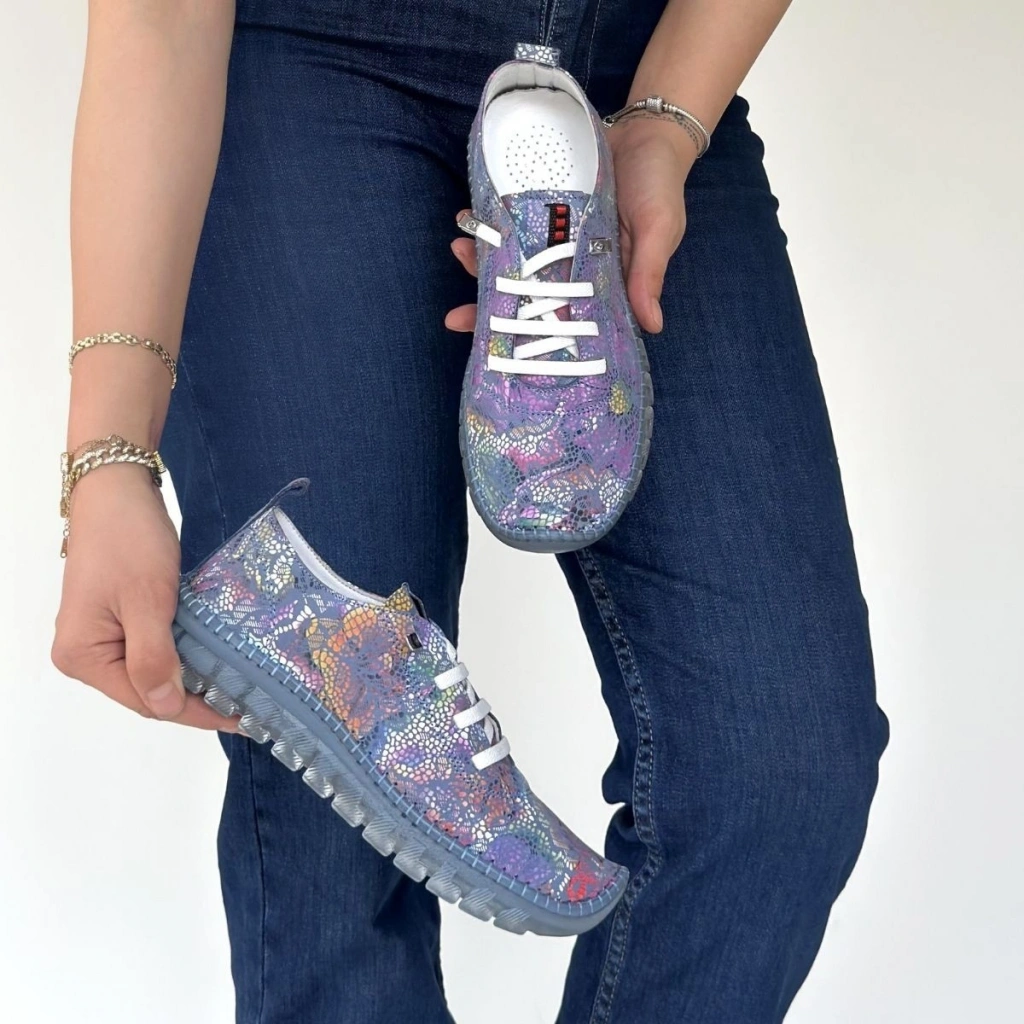 Jiten Mor Desenli Deri Bağcıklı Spor Ayakkabı