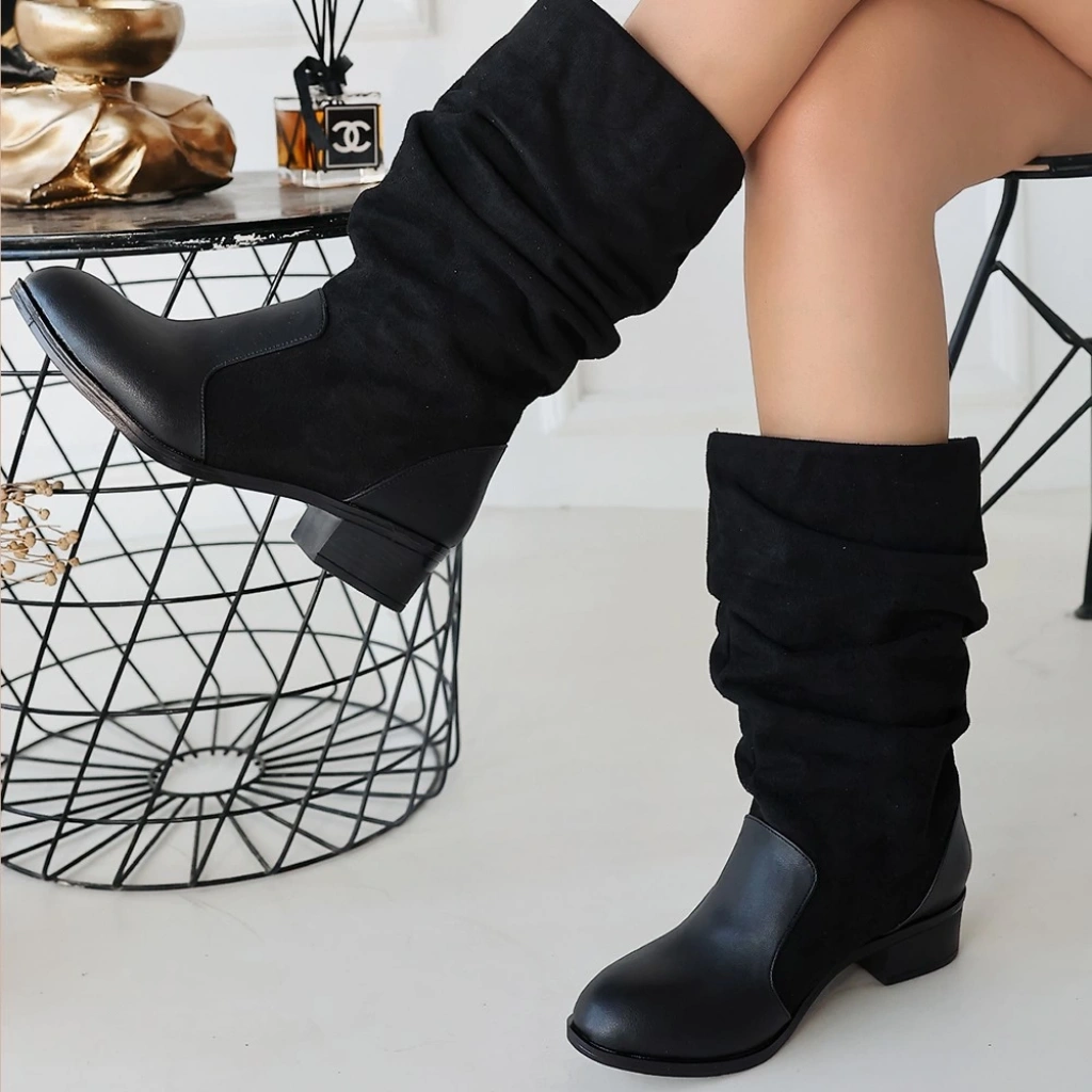 Jolin Siyah Cilt Süet Detaylı Çizme