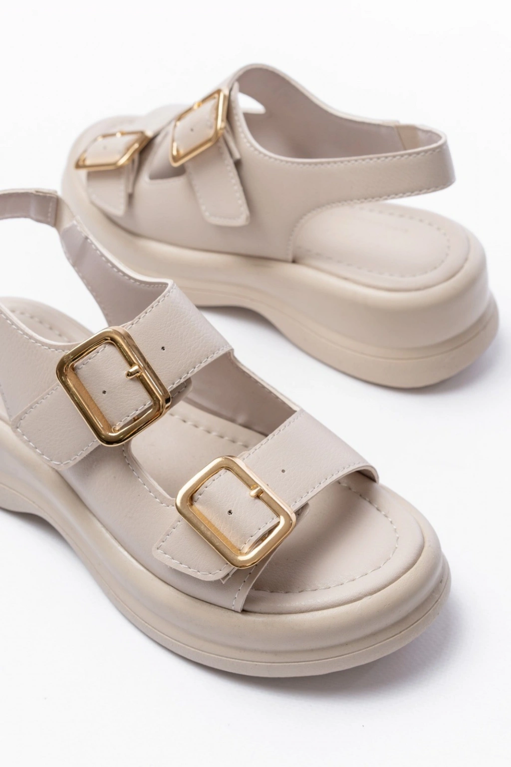 Kaji Bej Cilt Çift Tokalı Sandalet