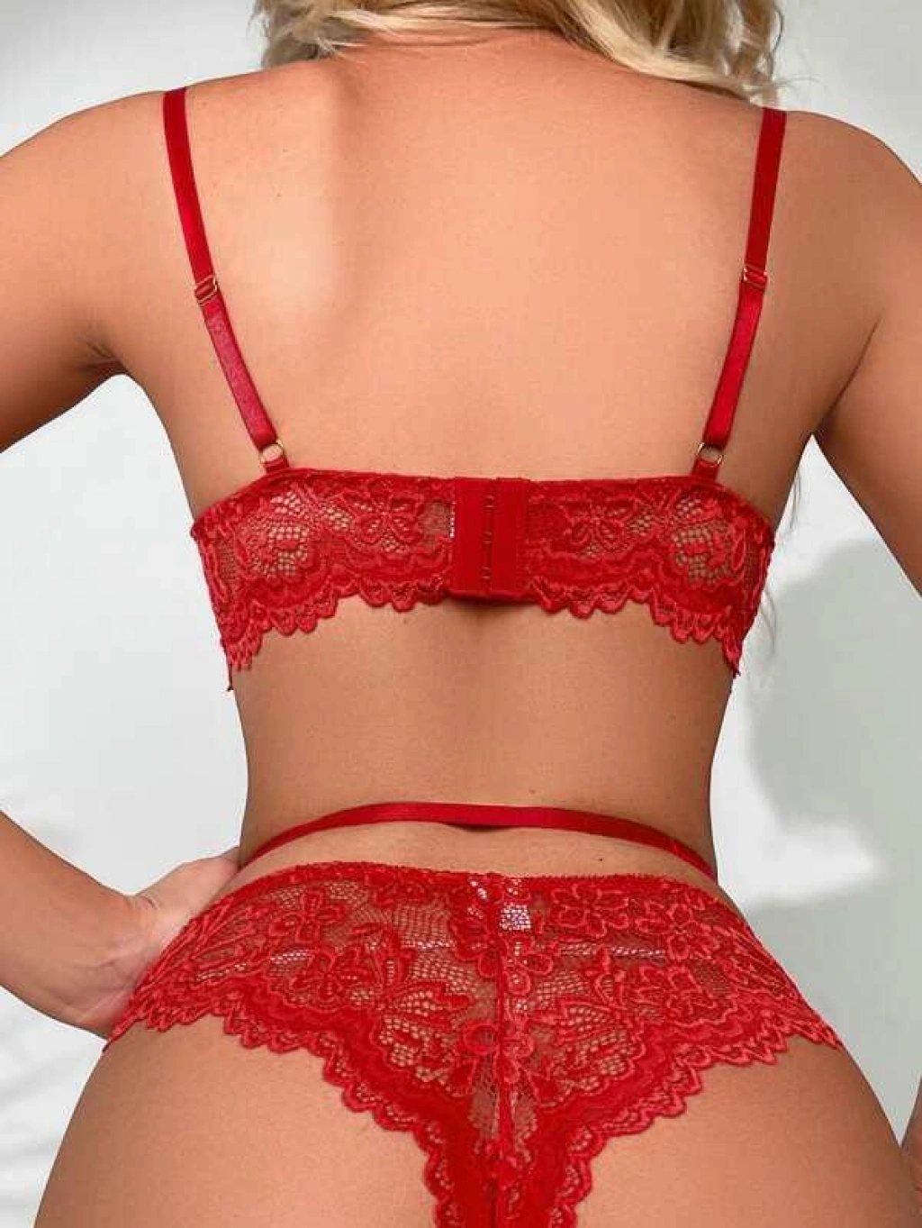 “Kırmızı tutkuyu, dantelin zarafetiyle buluştur, kalp aksesuarıyla romantizmi hisset.”