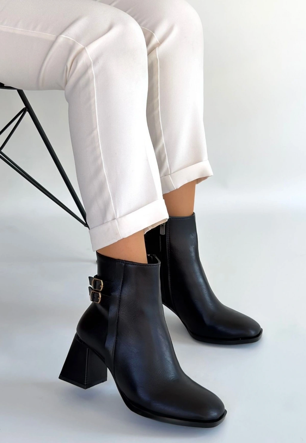 Kanda Siyah Cilt Topuklu Bot