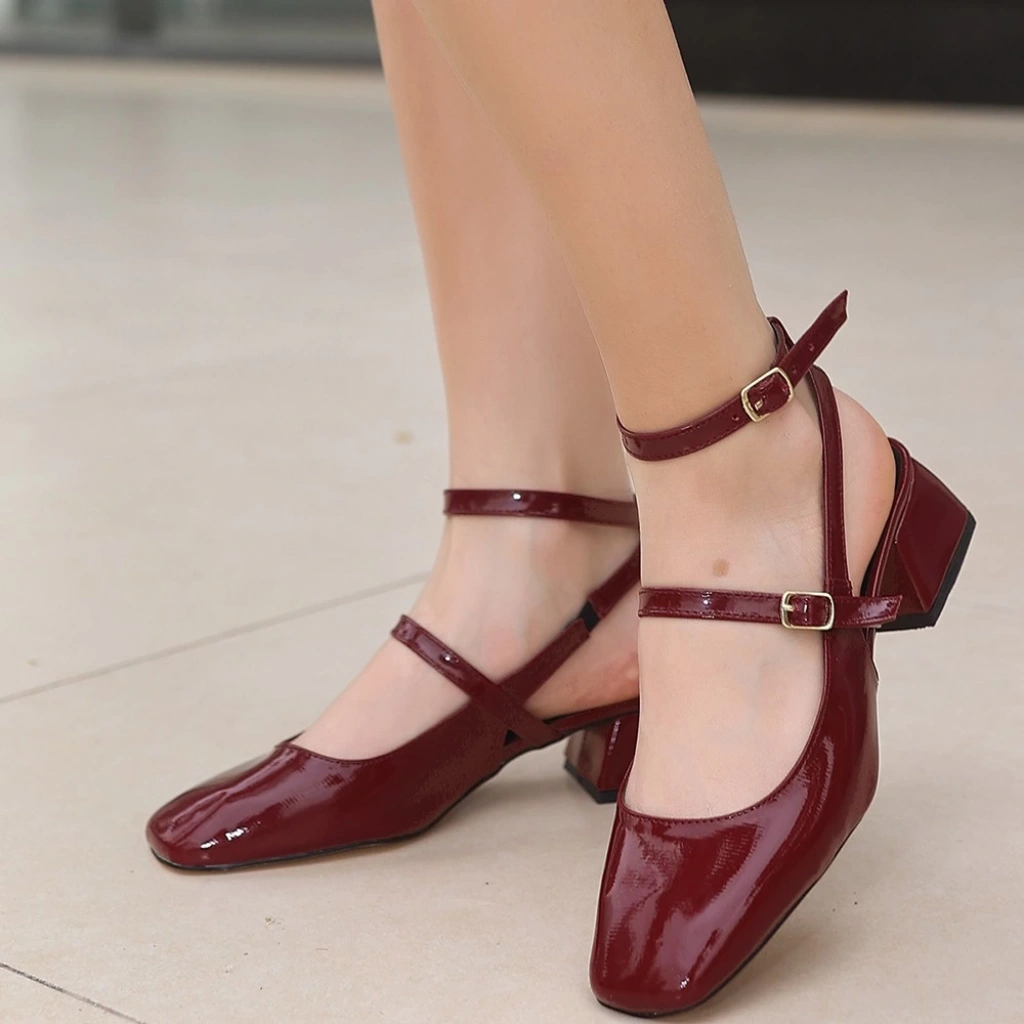 Karmi Bordo Rugan Topuklu Ayakkabı