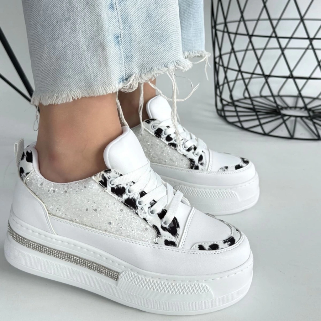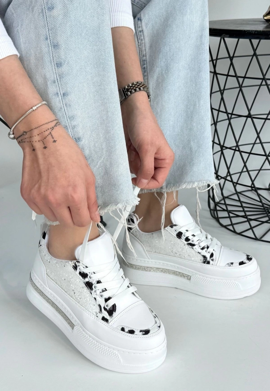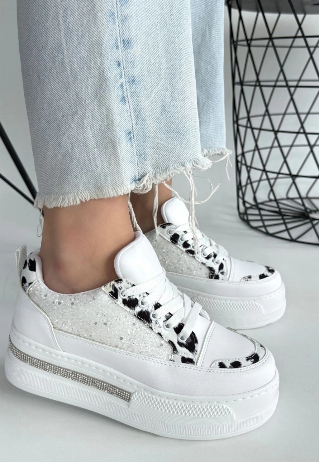 Lawin Beyaz Cilt Beyaz Simli Bağcıklı Spor Ayakkabı