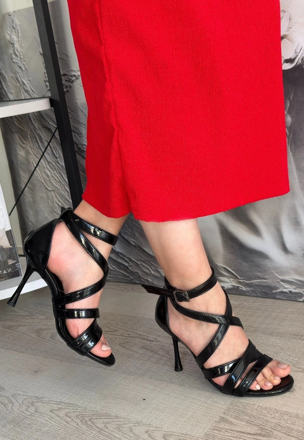 Mariya Siyah Rugan Topuklu Ayakkabı
