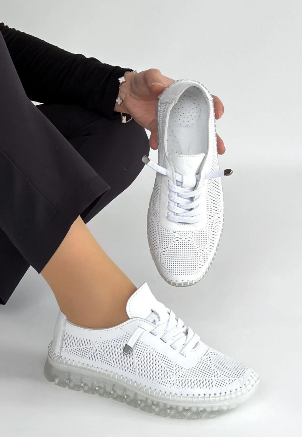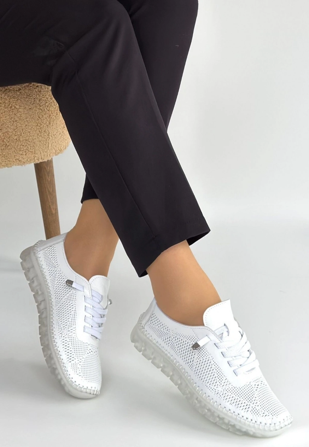Merja Beyaz Deri Bağcıklı Spor Ayakkabı
