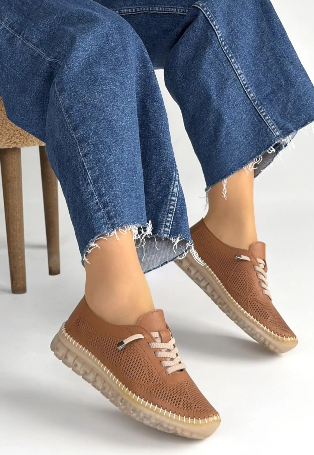 Merja Taba Deri Bağcıklı Spor Ayakkabı