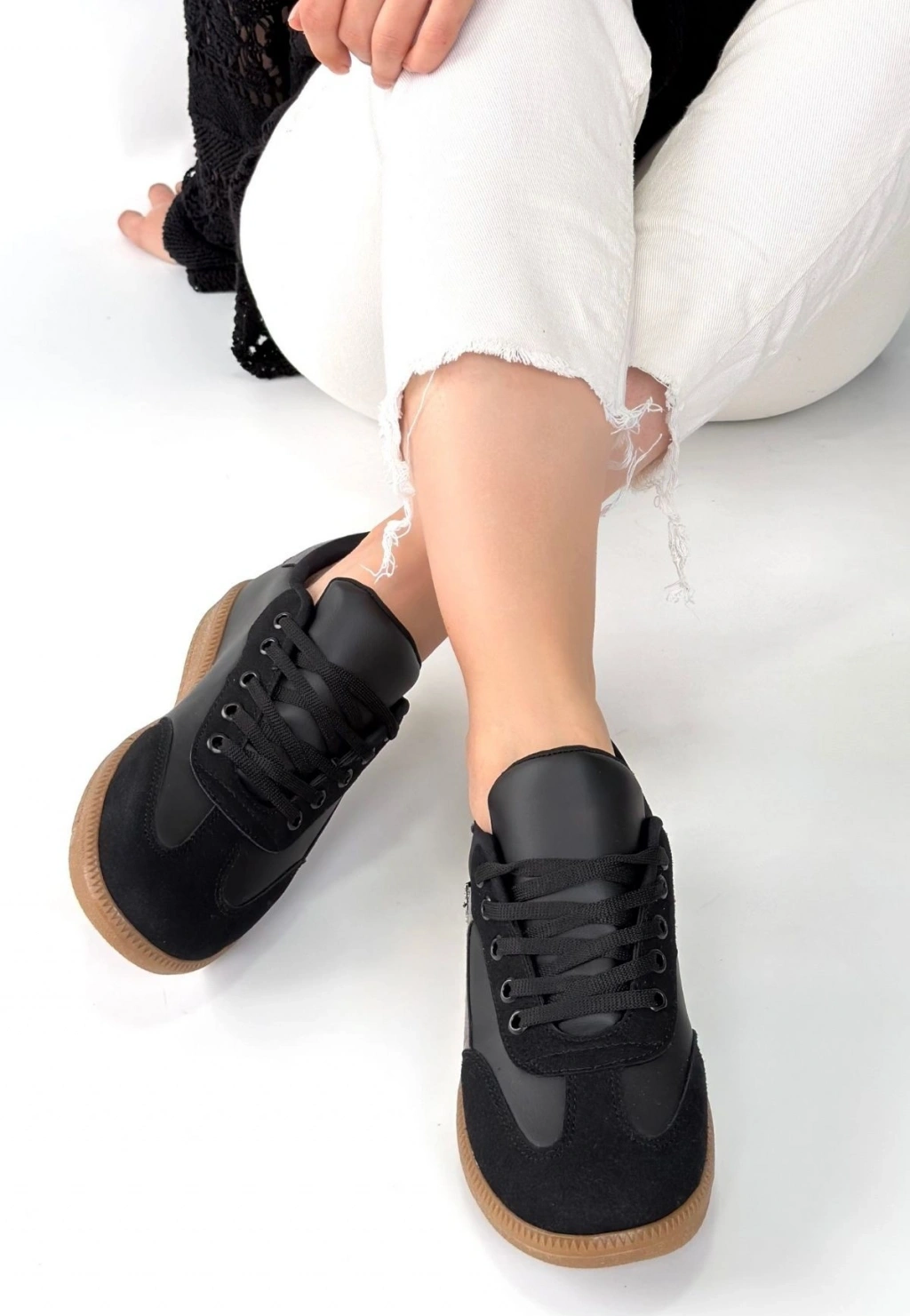 Mier Siyah Cilt Bağcıklı Spor Ayakkabı