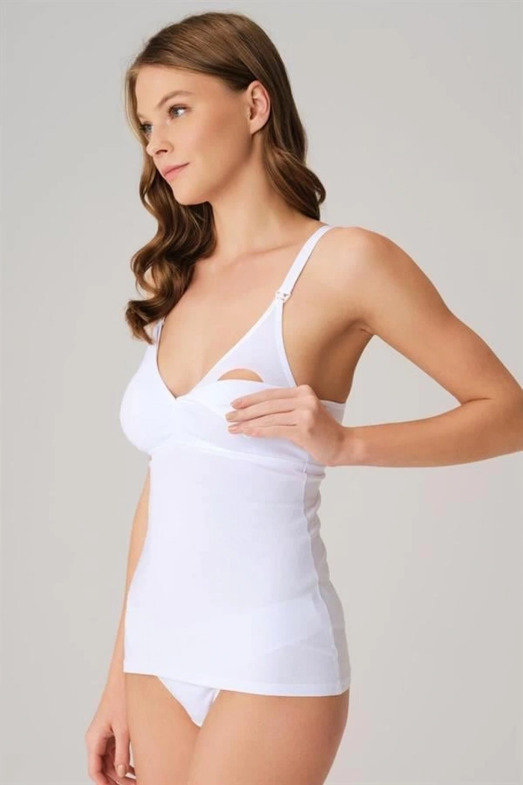 Yeni doğum yapan annelerin ihtiyaçlarına özel olarak tasarlanan bu beyaz emzirme atleti, modal ve pamuk karışımı kumaşıyla yumuşacık bir dokunuş sunar. Önden açılan klipsli yapısı sayesinde emzirme anlarında büyük kolaylık sağlar. Şıklığı ve sadeliği bir arada isteyen anneler için ideal.