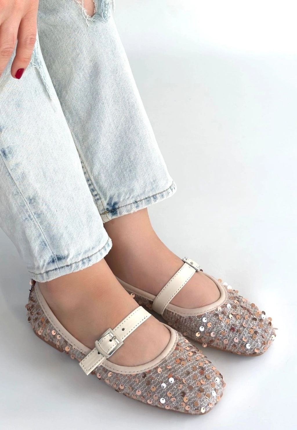 Moden Bej Süet Babae Ayakkabı