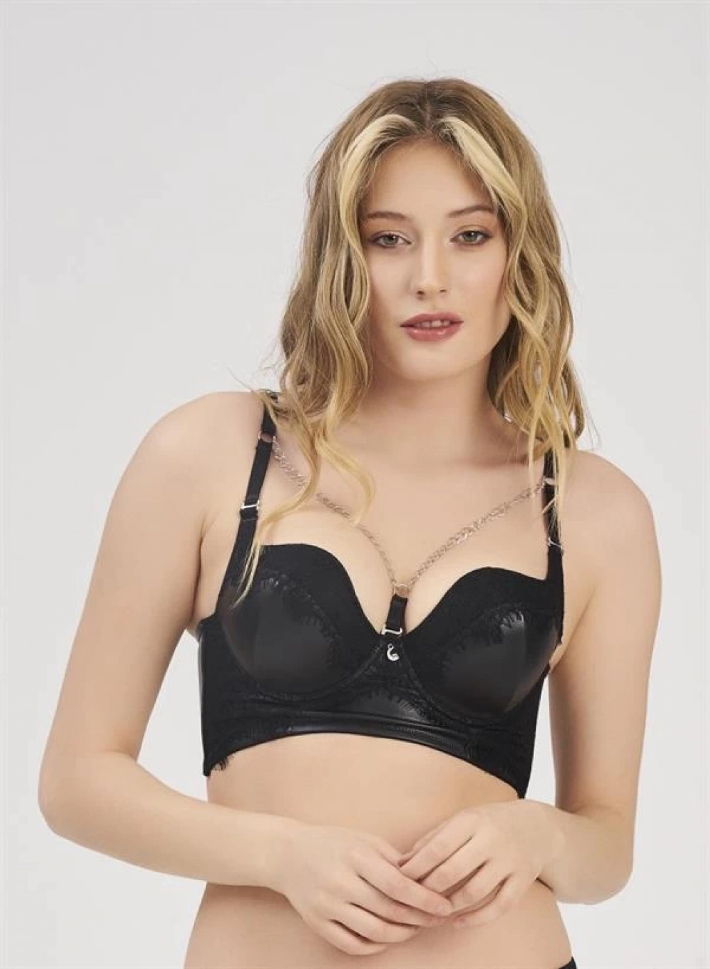 MOONLIGHT 2214 SİYAH SÜTYEN ZİNCİR DETAYLI