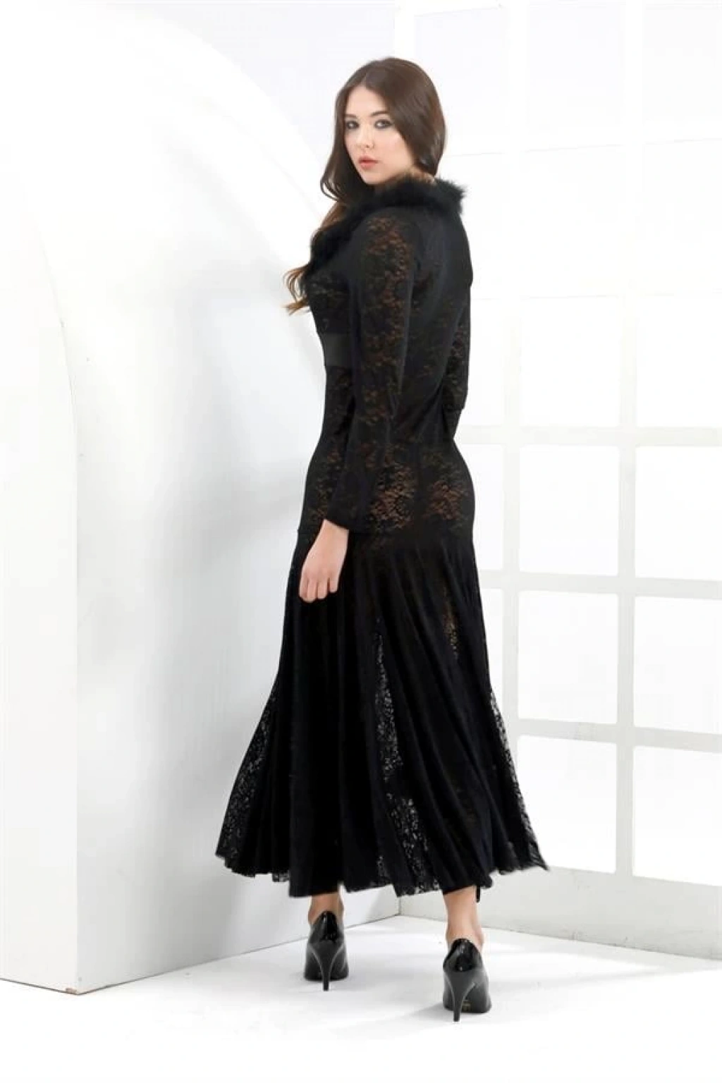 MOONLİGHT 9449 FANTEZİ YAKASI TÜY DETAYLI ELBİSE
