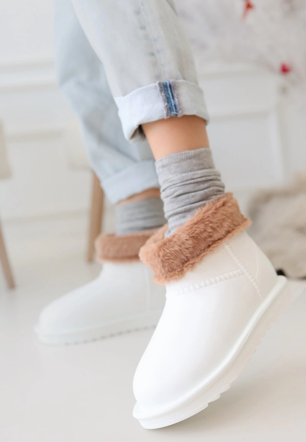 Mordi Beyaz Oval Burunlu Su Geçirmez İçi Kürklü Bot