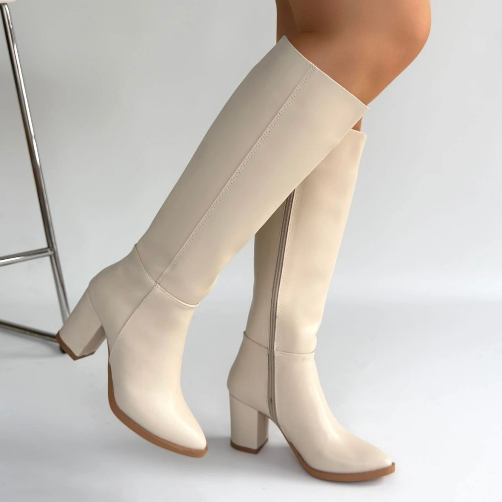 Morena Bej Cilt Bej Tabanlı Topuklu Çizme